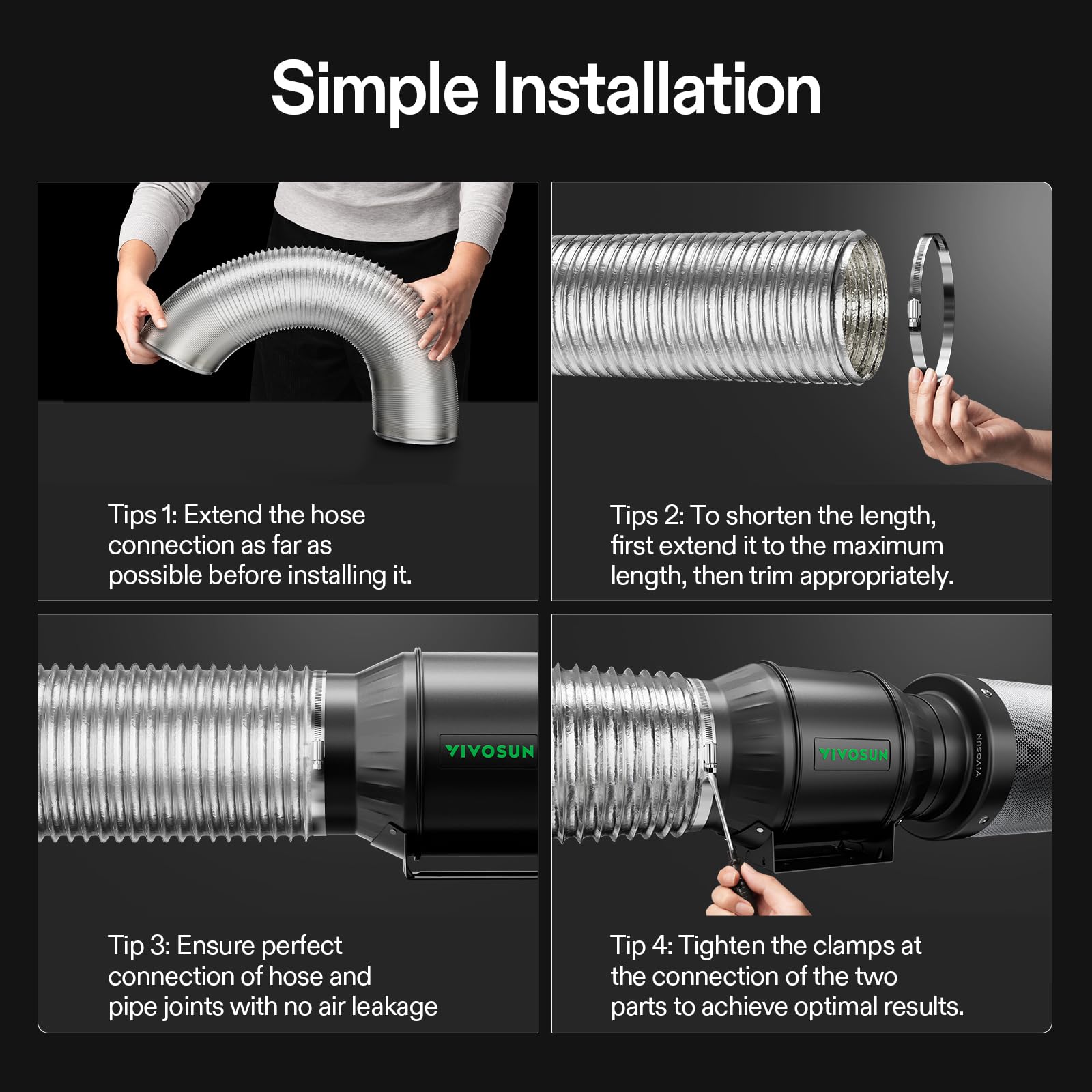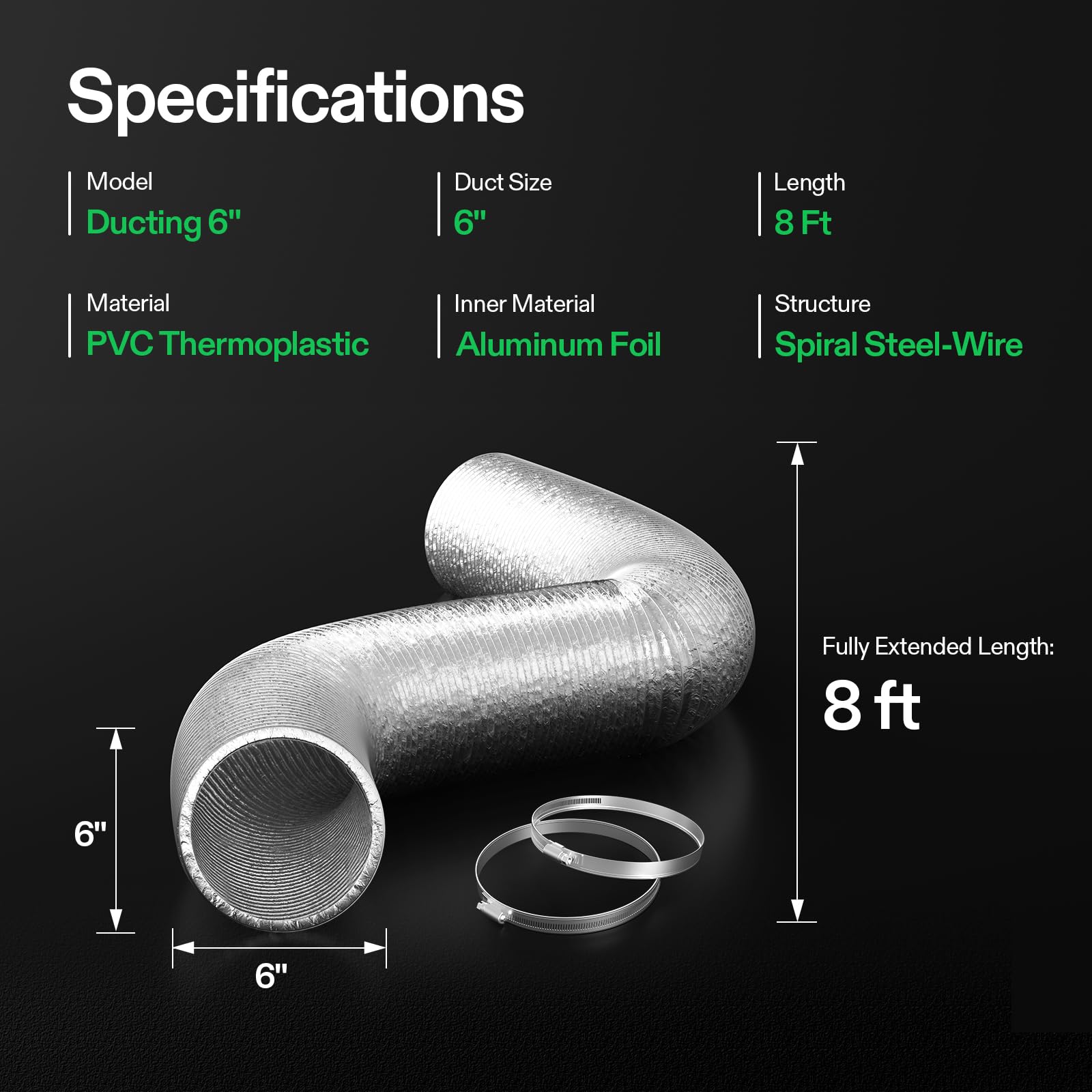 Flexible and Convenient: Thanks to the built-in steel wire, the length and shape of this ducting is flexible to change for fitting exhaust fan blower or inline fan; Being portable and lightweight, it can be installed at any place; Comes with 2 duct clamps in the same duct opening size for easy setup and securer connection