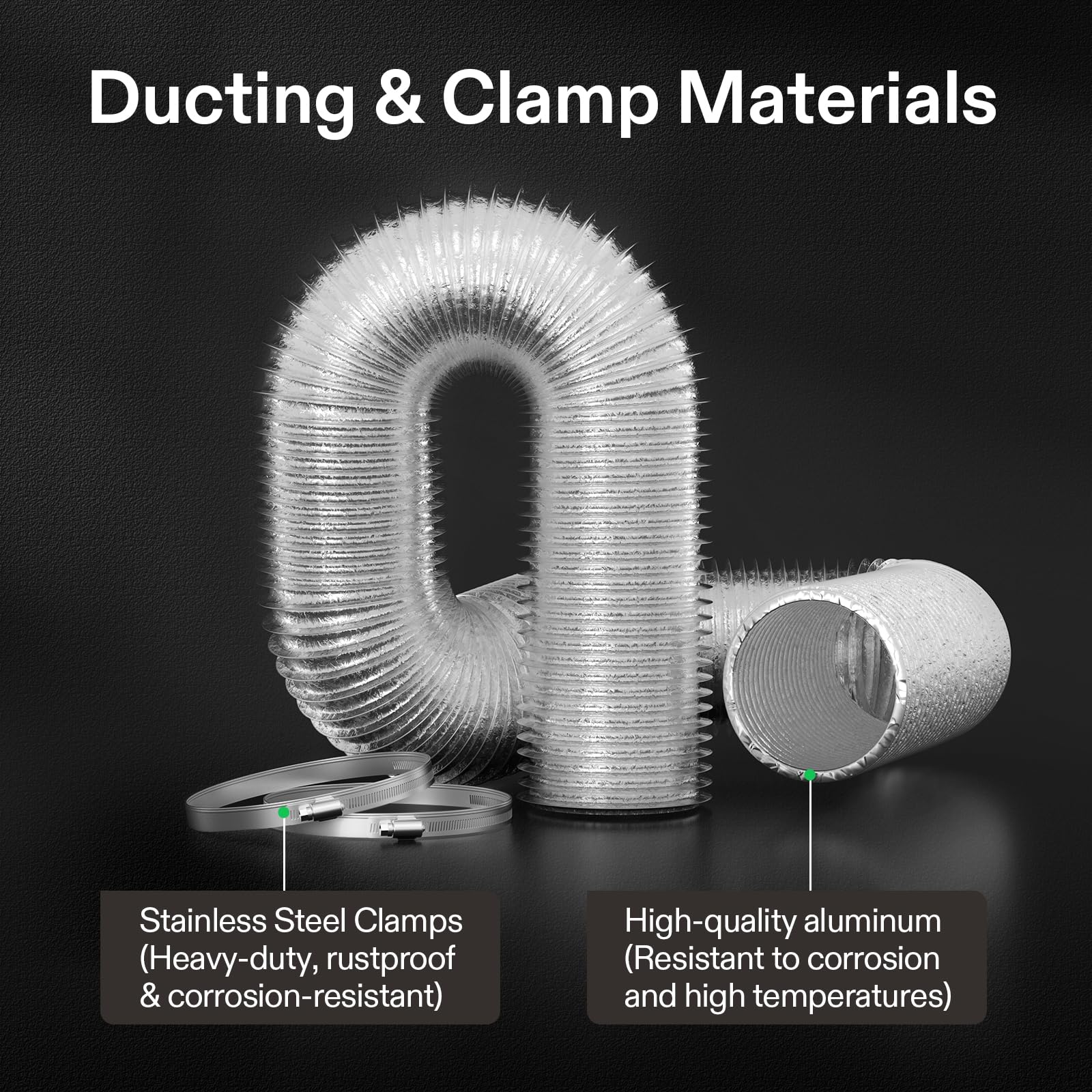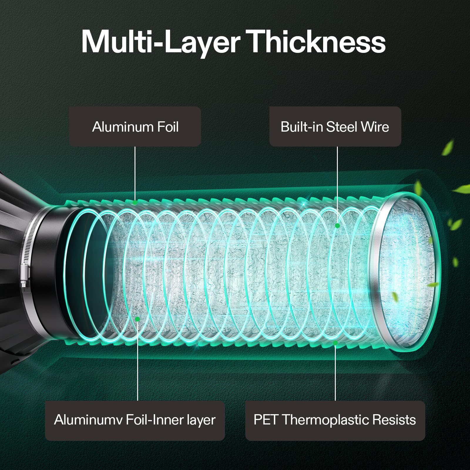 Multi-Layer Protection: It features 3-layer protection, making it more durable and resistant to leaks than single-layer ones; The internal and outer layers are made of heavy-duty aluminum foil that is fire/flame-retardant; Its middle layer adopts PET thermoplastic that protects the ducting from cuts and tears, all while stopping leakage