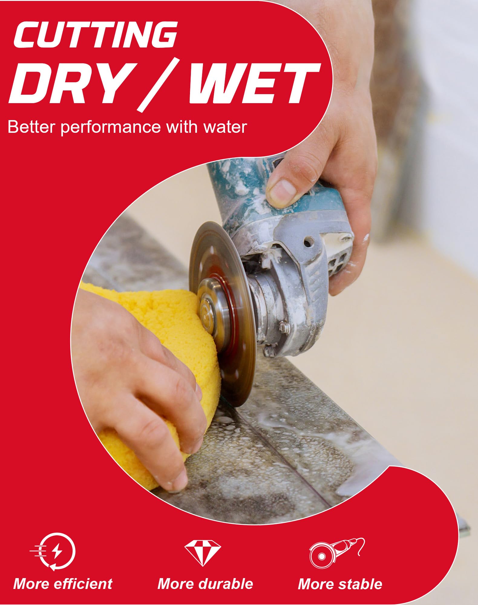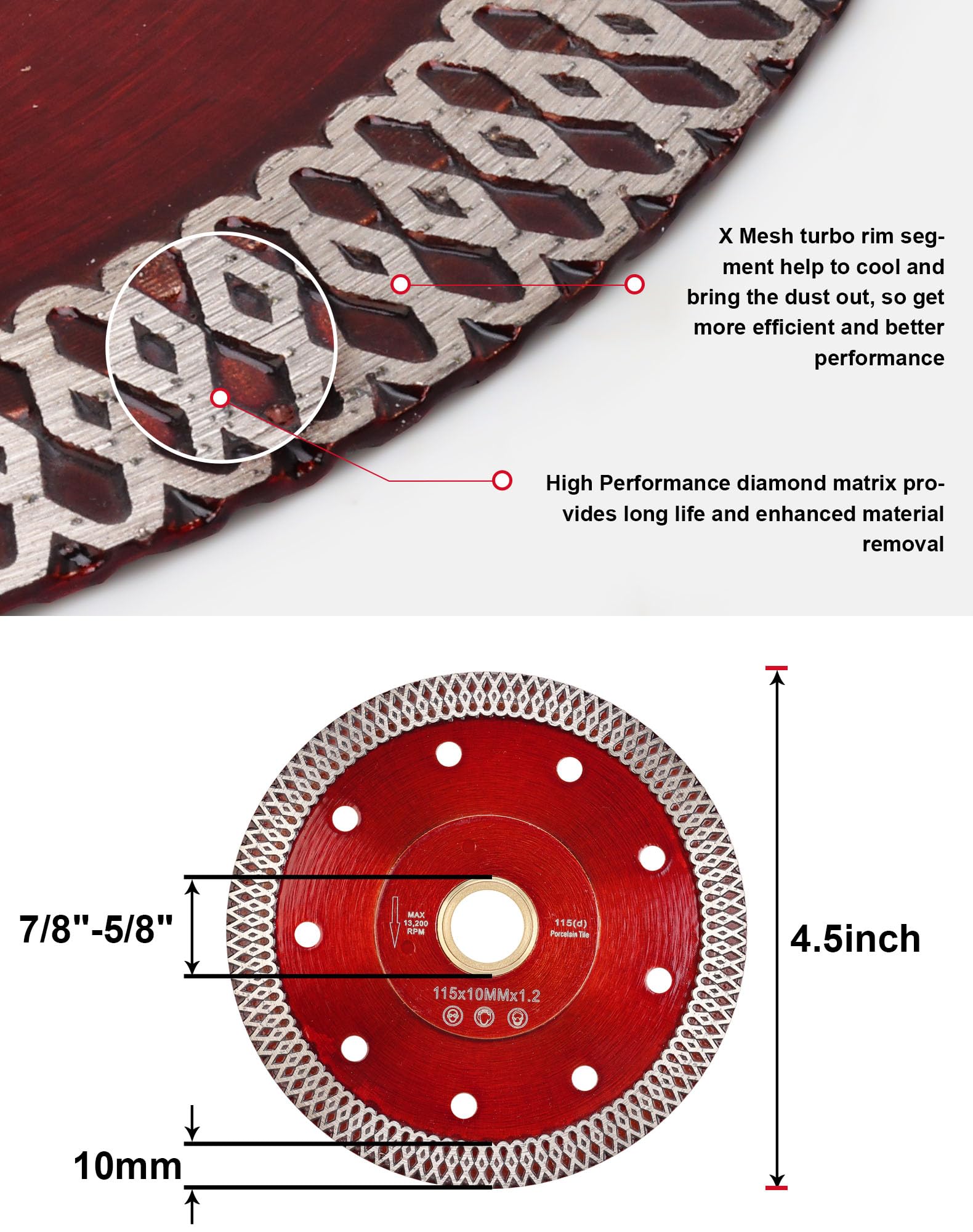 Super thin turbo mesh rim diamond blade provide fast, precise, smooth and chip-free cutting experience for you.