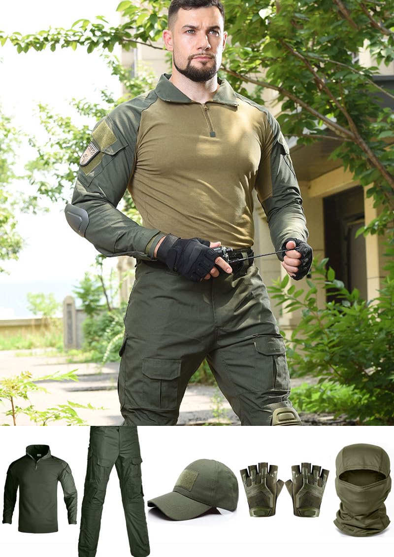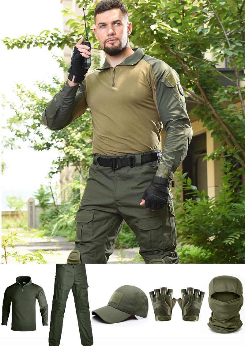 【Package Contains】Combat Como Pants + Shirt + Cap + Gloves + Balaclava Mask. A set of tactical gear.