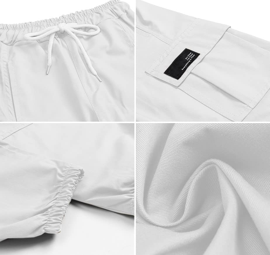 Design: It adopts an elastic ankle strap that fits the ankle well,is neat and fashionable,and convenient for exercise. A variety of pocket designs combine practicality and decoration. The elastic band waist design ensures no restraint when wearing and perfectly fits your curves. It adopts a conical cut,with a wider top and a narrower bottom. The hip and thigh areas are loose and comfortable,enhancing the shape of the legs and allowing for free movement. It is suitable for different body types.