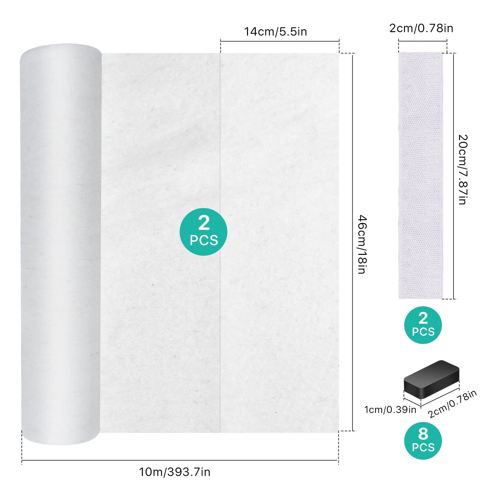 Package Includes: You will get 2 roll of 10 meter length range hood grease filter paper, 2pcs adhesive strips and 16pcs magnetic blocks. Universal filter paper can meet your long-term use