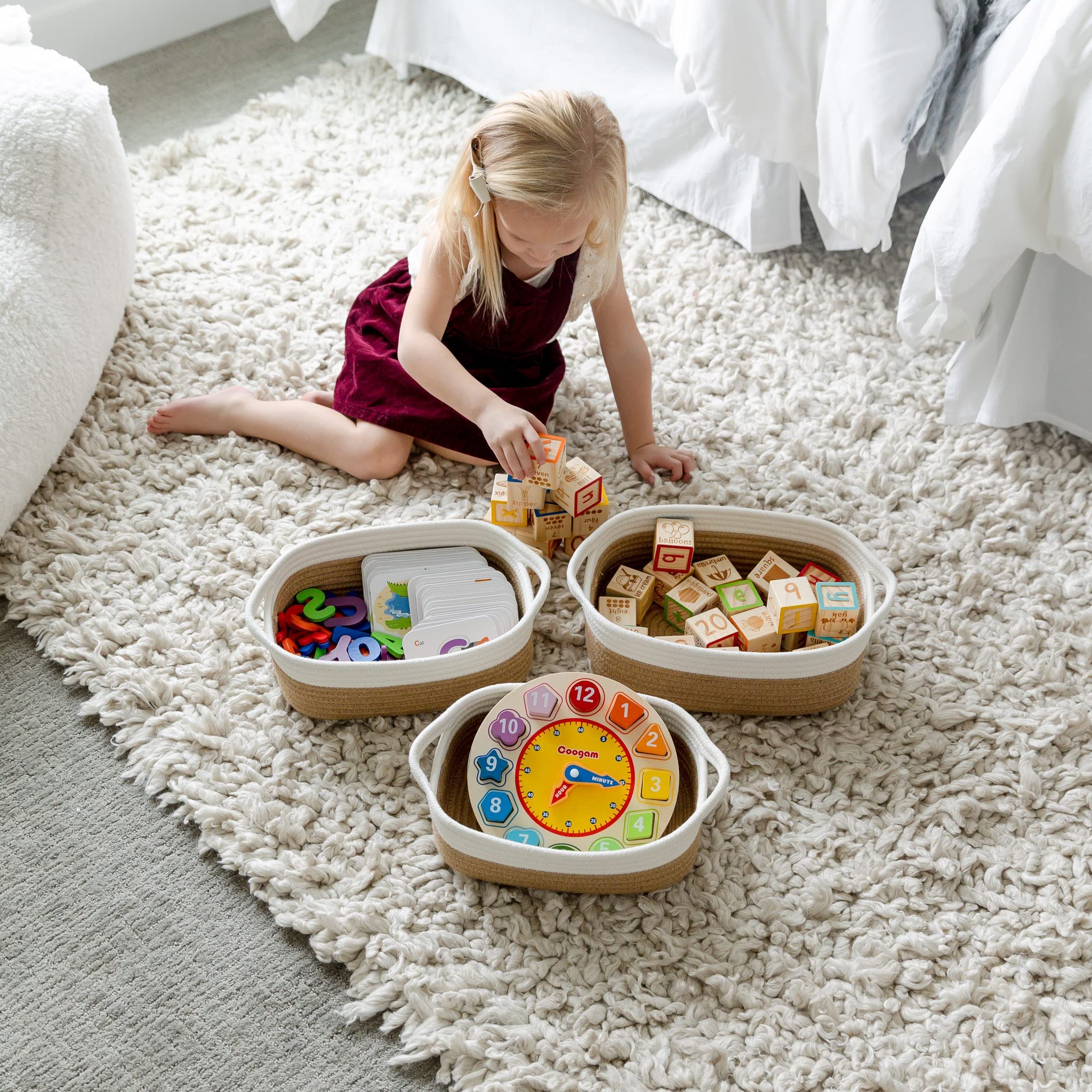 DOUBLE REINFORCED & SCRATCH-FREE DESIGN: When you’re a full-time mom or dad, you need a storage solution that works just as hard as you do. With reinforced stitching on the handles and base, our woven storage basket set is ready to tackle some heavy-duty actions and will sustain the roughest toddler play. With our soft yet firm handwoven rope basket designs, you’ll never have to worry about scratches or marks being left on your coffee table, shelf, front door table, nightstand or any tabletop.