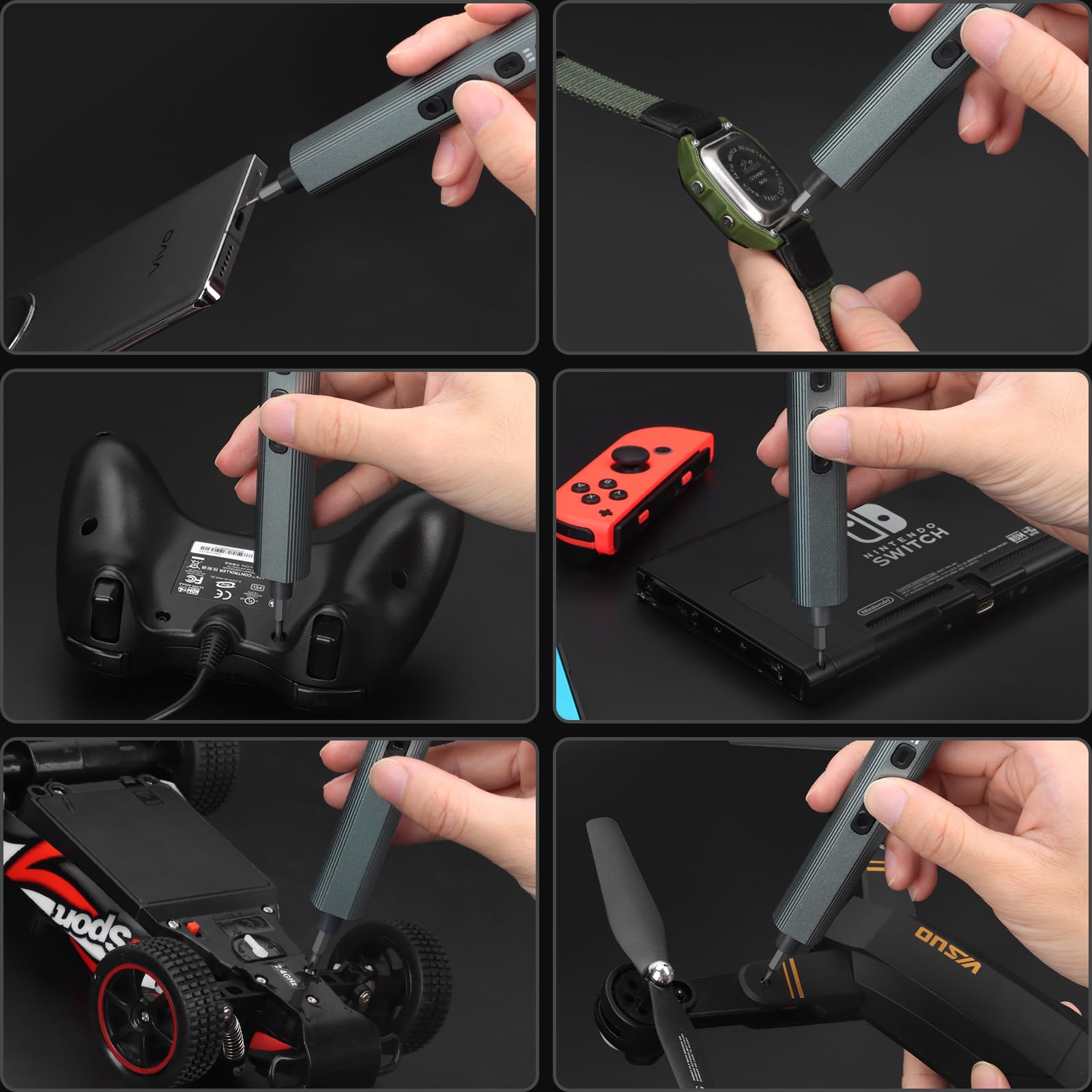 User-Friendly Design: This lightweight, pen-style cordless screwdriver features a non-slip grip and responsive touch buttons for comfortable use. Easily adjust the torque with a simple push-button. The rechargeable screwdriver comes with a robust, magnetic case where each accessory is securely stored and labeled for quick access, allowing you to store, protect, and carry the electric screwdriver like a professional technician