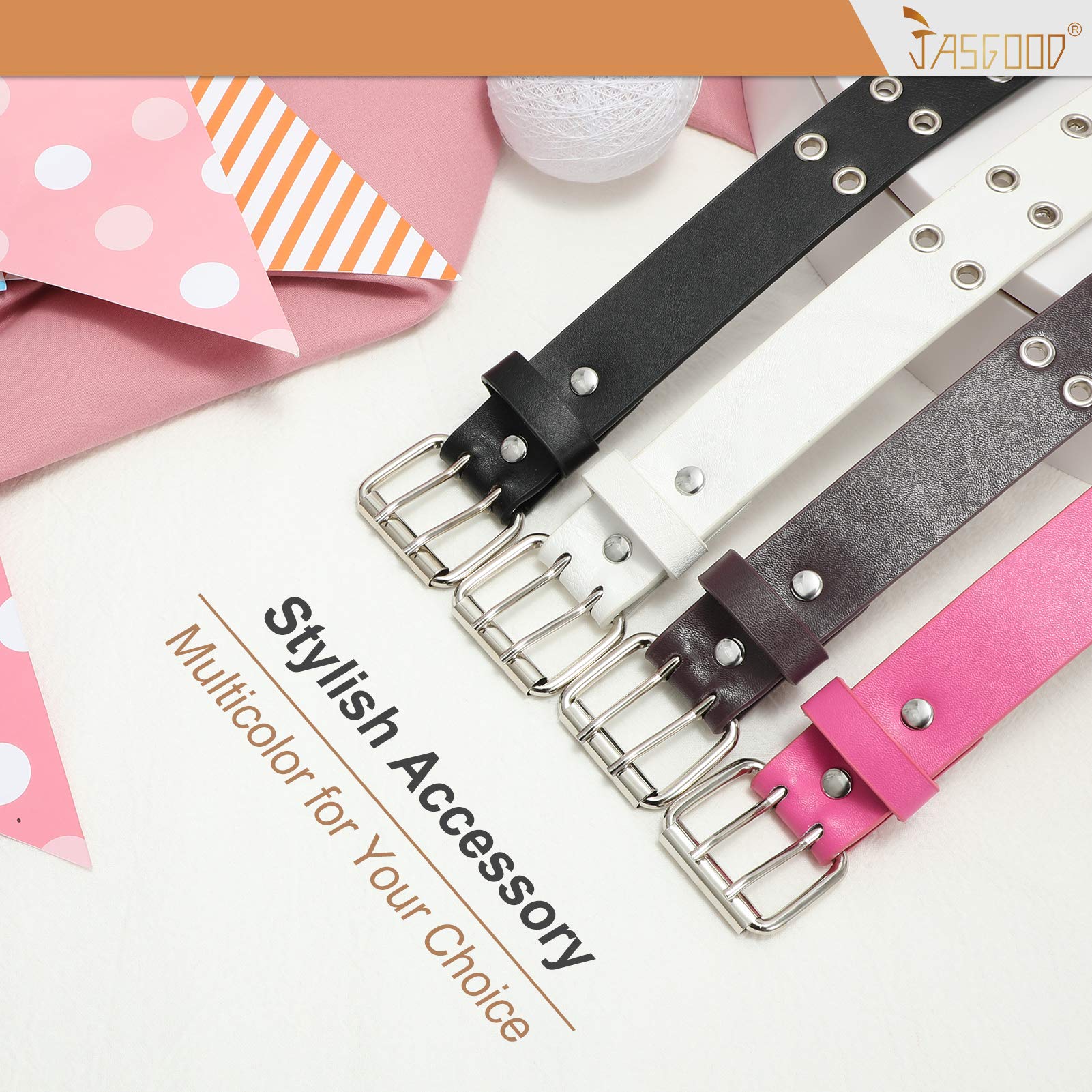 MULTIPLE COLOR---This kids grommets belt have black, white, coffee and rose red to meet all your kids outfit demands and will give your kids versatile style. It can perfect match with their school uniforms, jeans, pants,dress and blouse. The double studded hole belts will be the great aesthetic accessories to decorate your kids waist and light up their outfits!