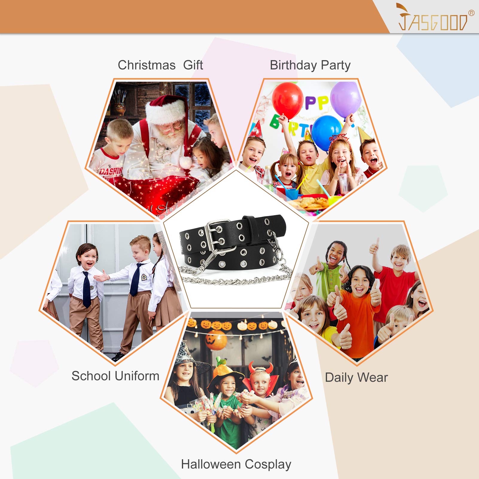 FASHION DESIGN FOR BOYS AND GIRLS---This kids double metal eyelets belt is great for boys and girls. A fashion item to hold your boy and girls pants up and decorate their outfit in the daily life or other spacial occasion. The punk feature make the belt special and catch people’s eyes.