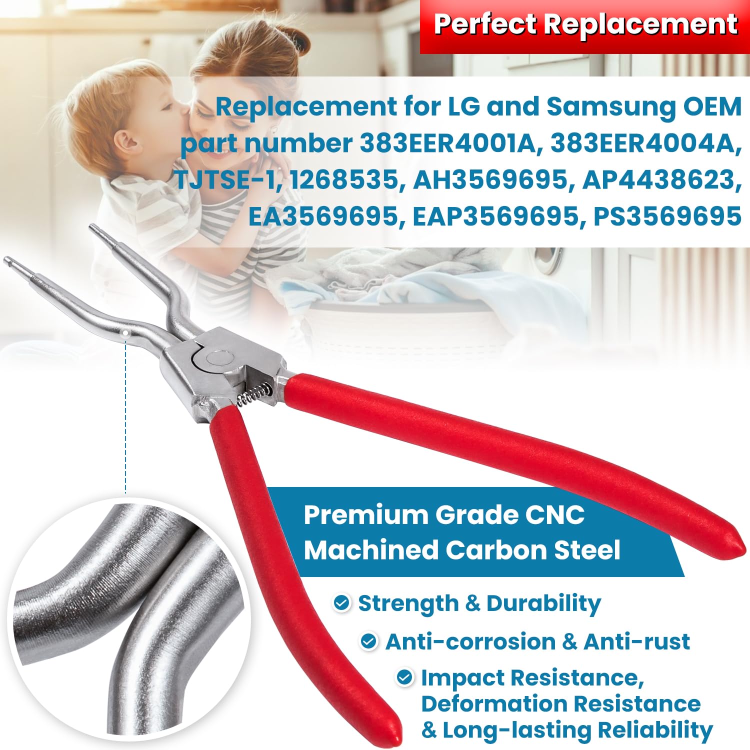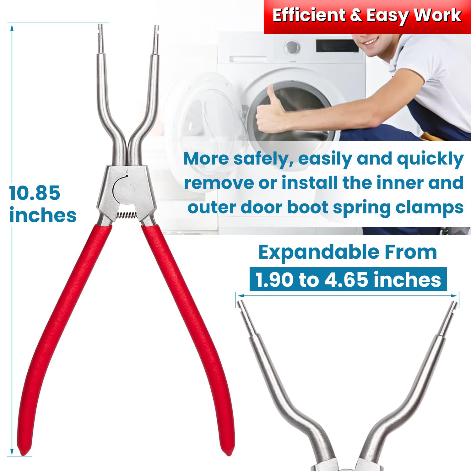 Perfect Design — Expandable from 1.90" to 4.65" for wide applications. This tool will help you more safely, easily and quickly remove or install the inner and outer door boot spring clamps. Built-in high quality spring, ergonomic design handle with comfortable, non-slip and insulative handle cover, ensures easy, safe and effective maintenance or repair of your washers.