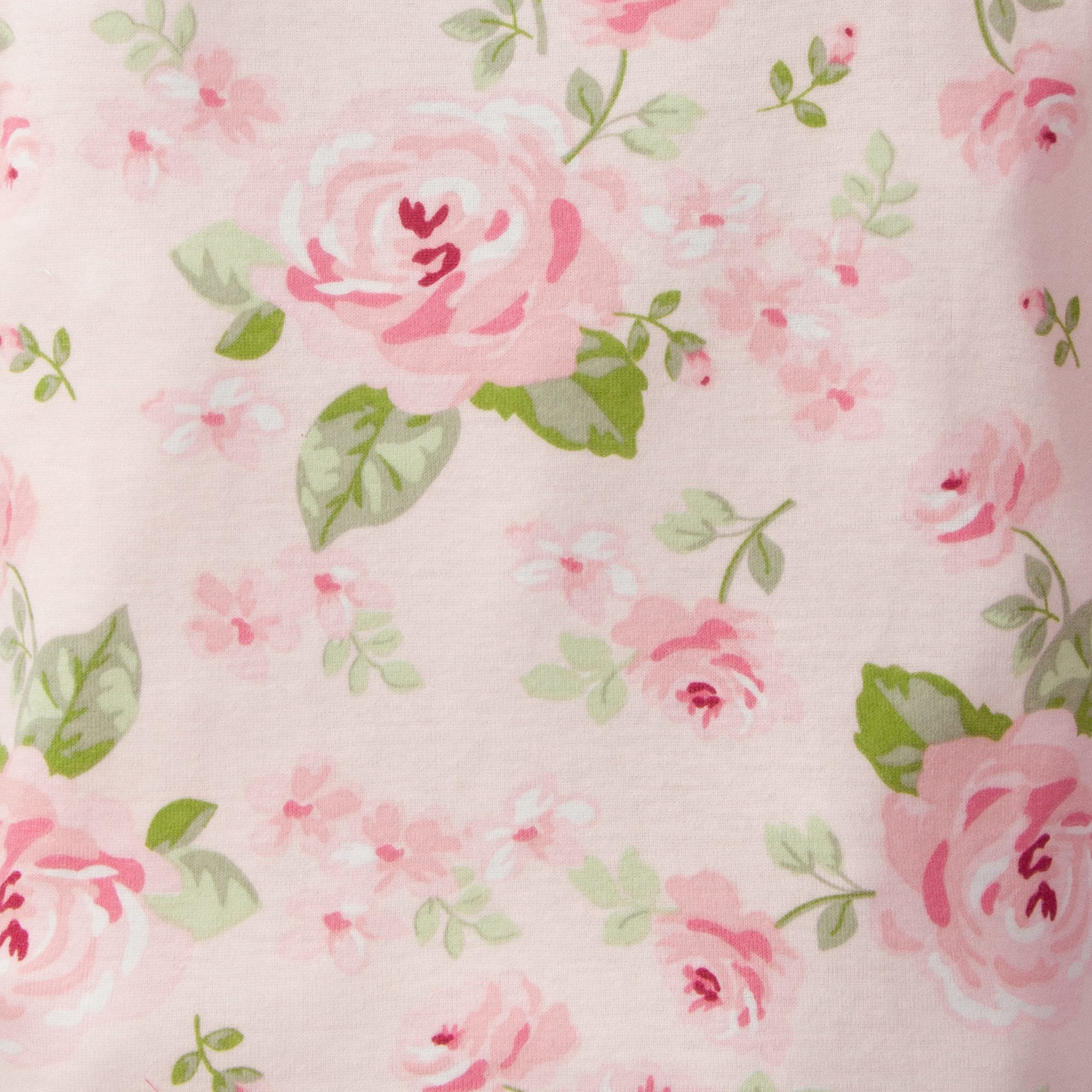 Short sleeve top light pink with allover floral rose print, long sleeve top magenta with screen & glitter print rose art
