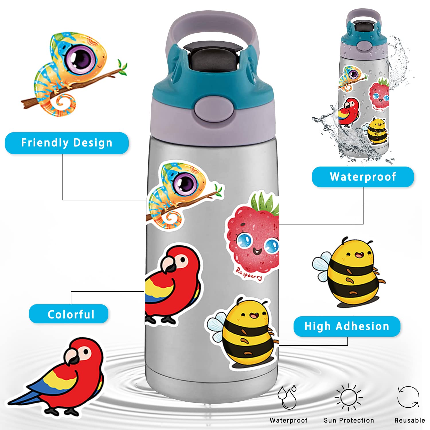 [Kids Sticker Pack] You will get 200 sheets of cute kids animal mix stickers. Kids can decorate their personalized items with friendly kawaii cartoon animal pattern stickers, create stories and scenes and characters through the stickers, and develop their imagination and creativity!