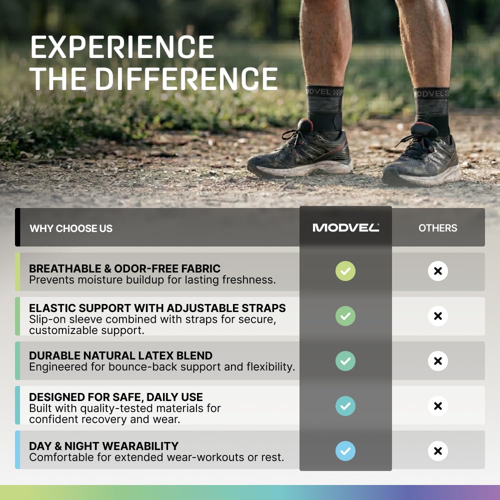 Faster Pain Relief & Recovery – Speed up recovery from sprained ankles, plantar fasciitis, Achilles tendonitis, and swelling with our ankle support sleeve featuring advanced Strapless Compression Tech for 2X faster relief without restricting movement.