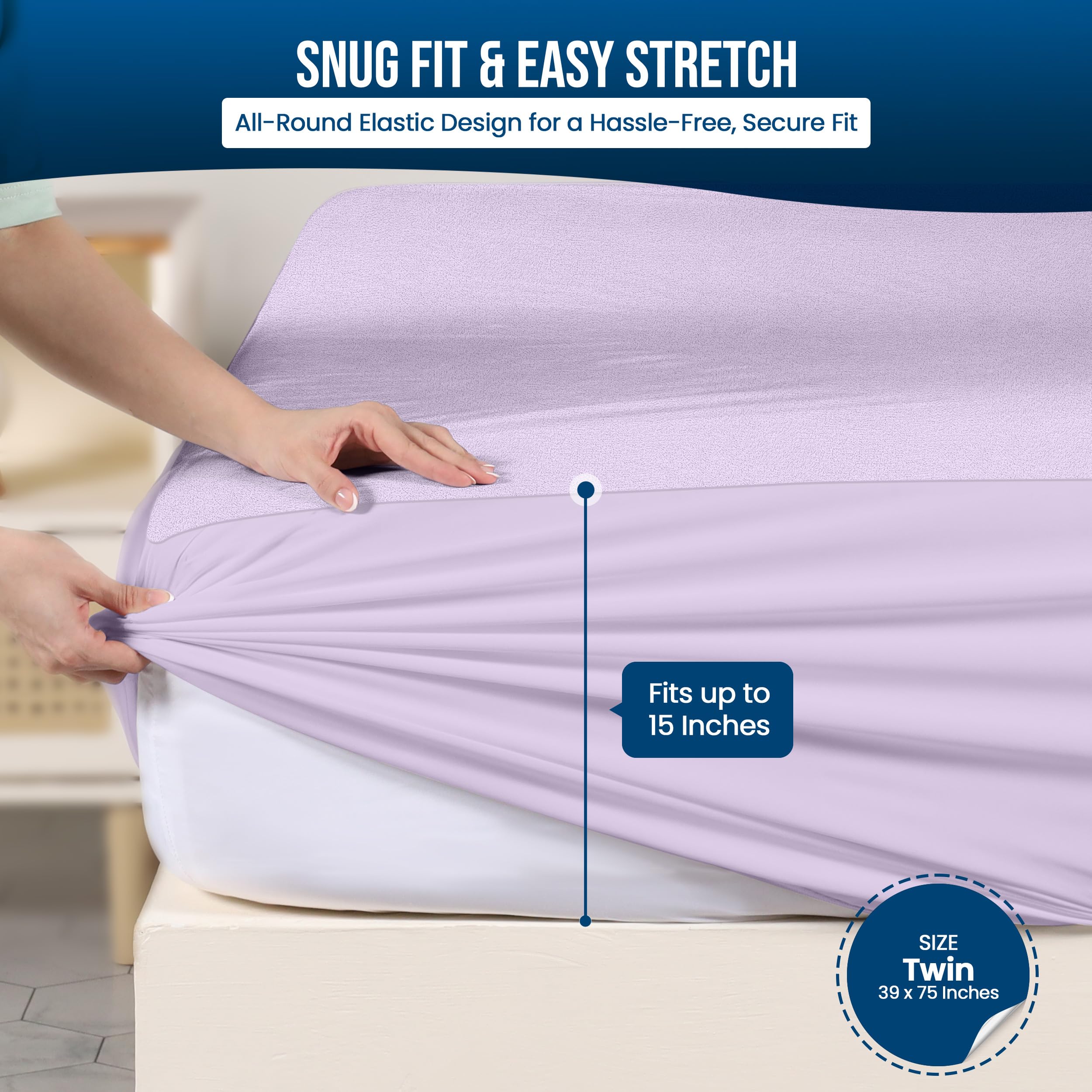 Mattress Protector - Fits Twin size mattress perfectly with dimensions 39 inches by 75 inches by 15 inches, featuring professionally turned hems and deep fitted pockets
