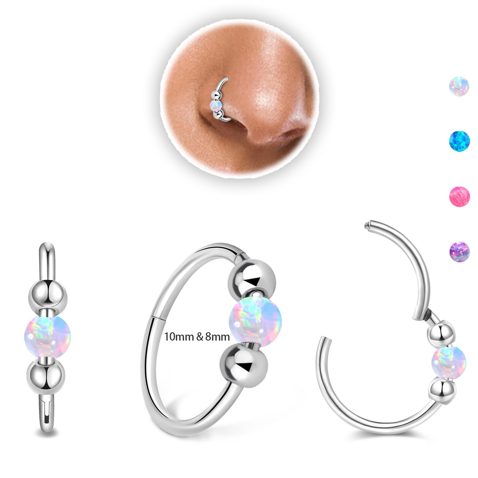 Use - Used as silver double gem horseshoe nose ring hoop 18g horseshoe nose ring half hoop gem nose hoops 18 gauge nose ring hoop 18g half hoop Earring Hoops horseshoe half hoop tragus hoops 18 gauge double gem septum nose ring 18g septum jewelry for women pink nose ring hoop