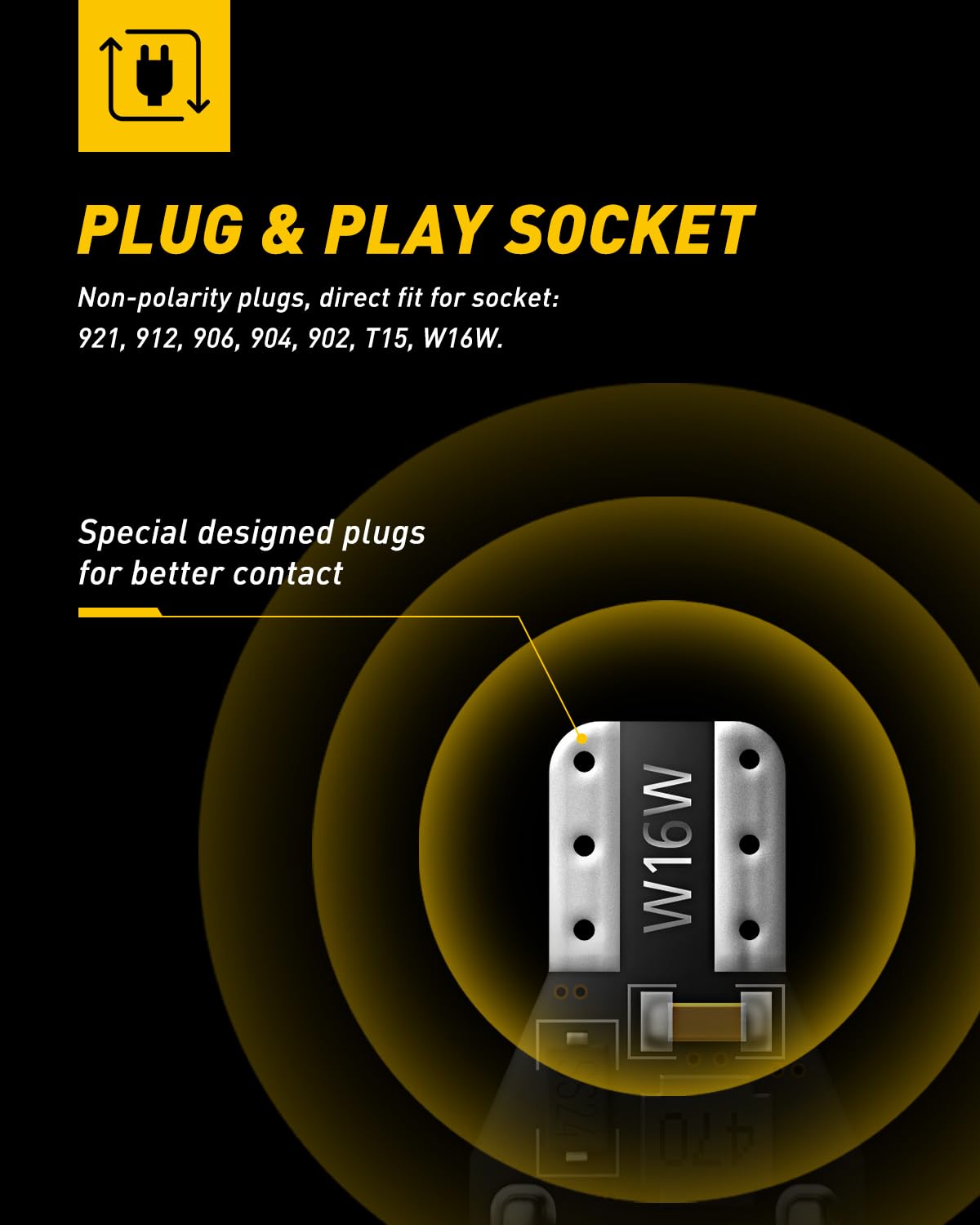 Suit for Socket: T15, 912, 921, 906, 904, 902, 922, W16W, just plug and play without modification. Can be used for third brake light and high mount stop light.