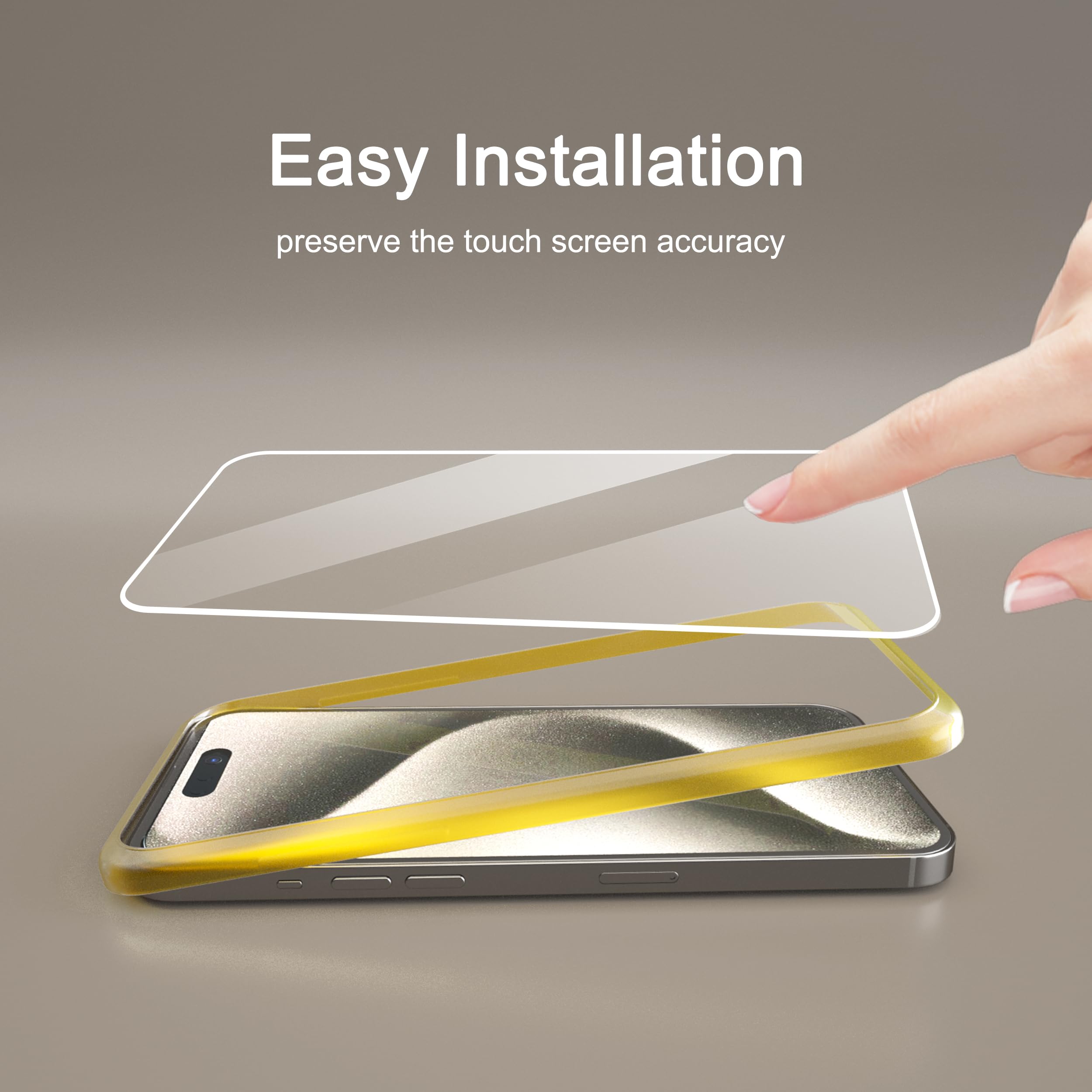 [3+3 Pack] This product includes 3 pack screen protectors and 3 pack camera lens protectors with Installation Frame. Works For iPhone 15 Pro 6.1 Inch display tempered glass screen protector and camera lens protector.Featuring maximum protection from scratches, scrapes, and bumps.[Not for iPhone 15 6.1inch, iPhone 15 Plus/iPhone 15 Pro Max 6.7inch]