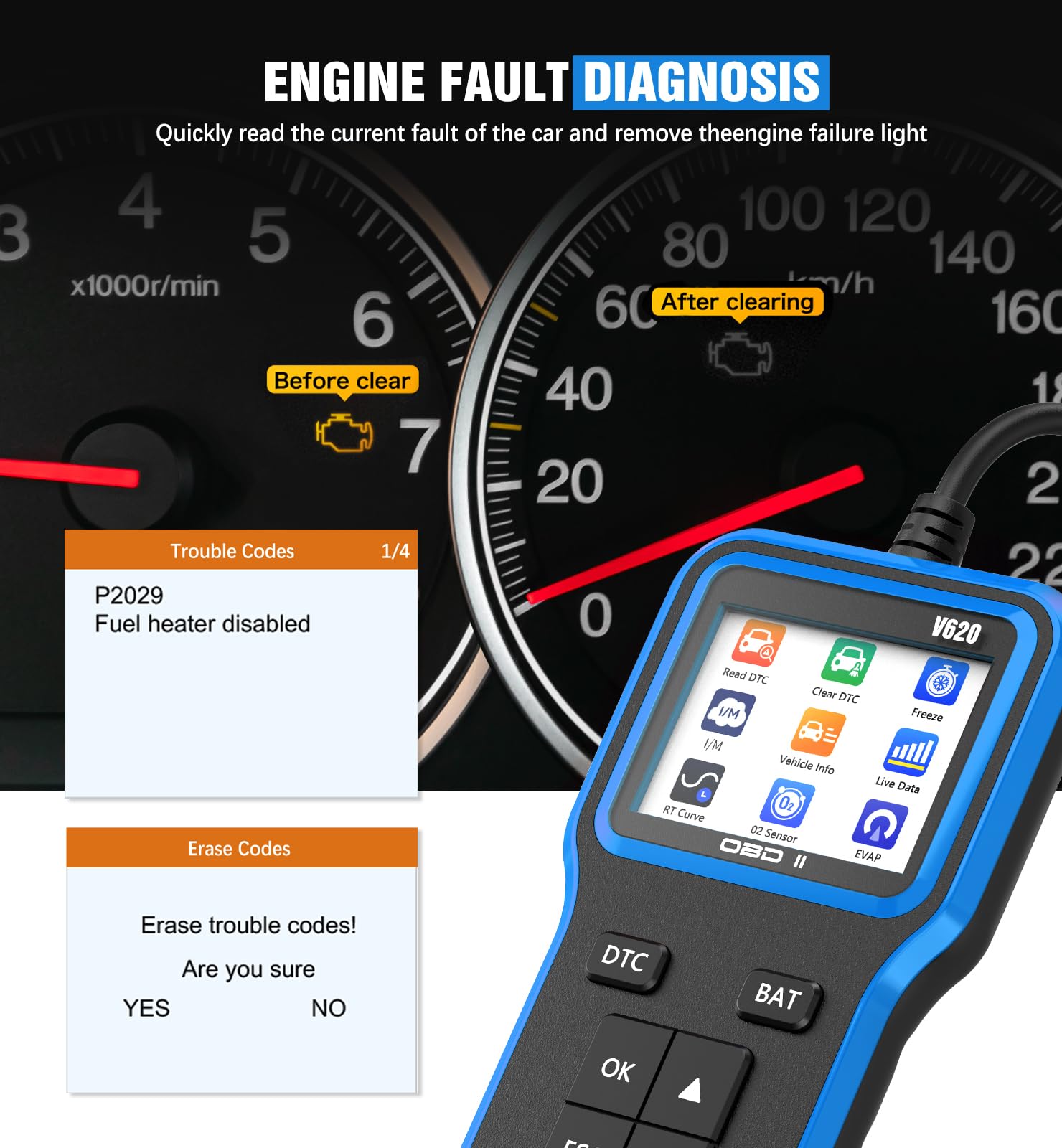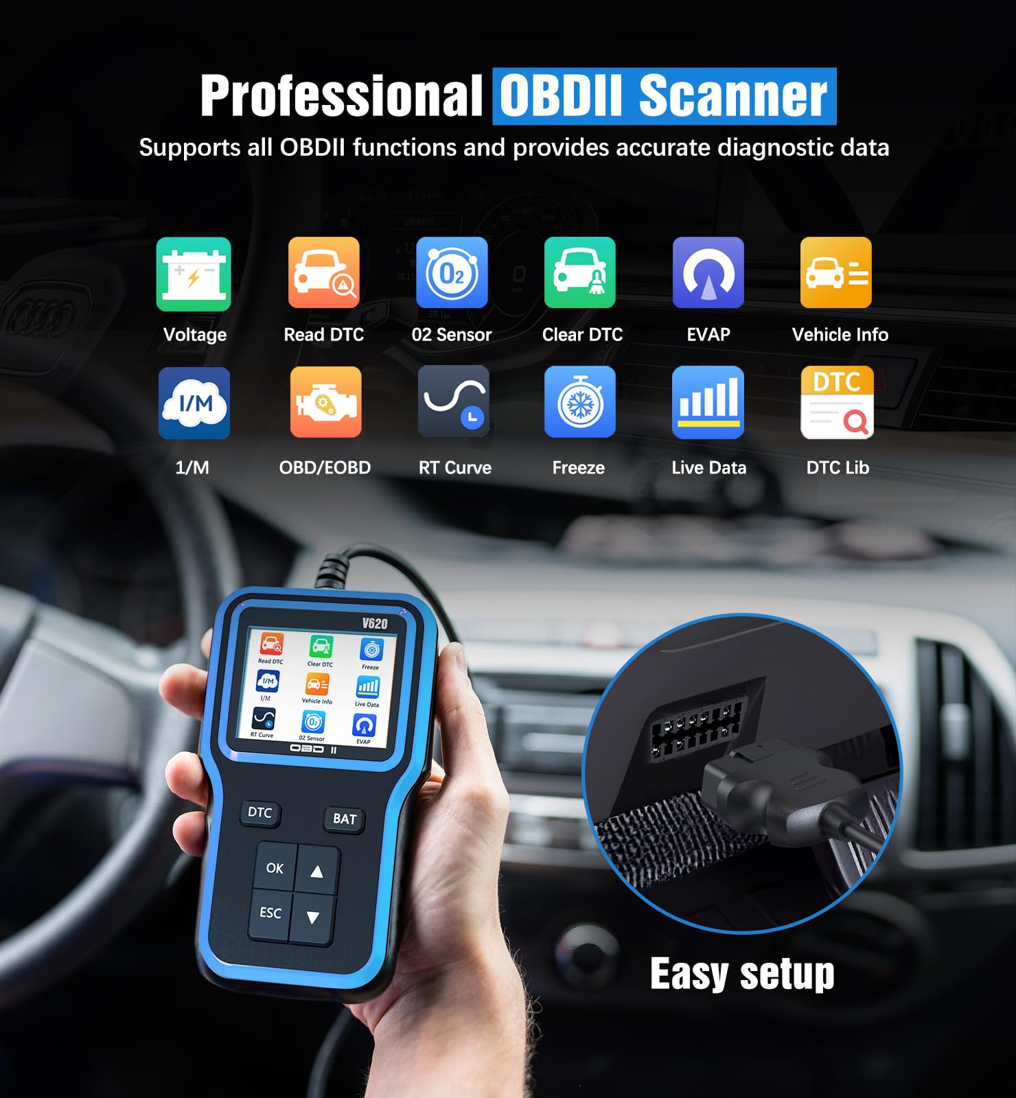 Accurate, Fast and Worth Having: The OBD2 code reader adopts an upgraded microprocessor, its powerful performance provides fast and accurate results and displays them on the screen, draws and records real-time vehicle sensor data, helps you understand the condition of the car, quickly diagnose and repair common car problems. 6 buttons for quick operation, plug-and-play design makes it easy to use, you can easily operate it without reading the manual. The OBD2 scanner is not only designed to be lightweight and portable, but also simple, accurate and fast to operate, affordable and more cost-effective, it is a must-have tool for home DIY diagnosis or mechanics to use in auto repair.