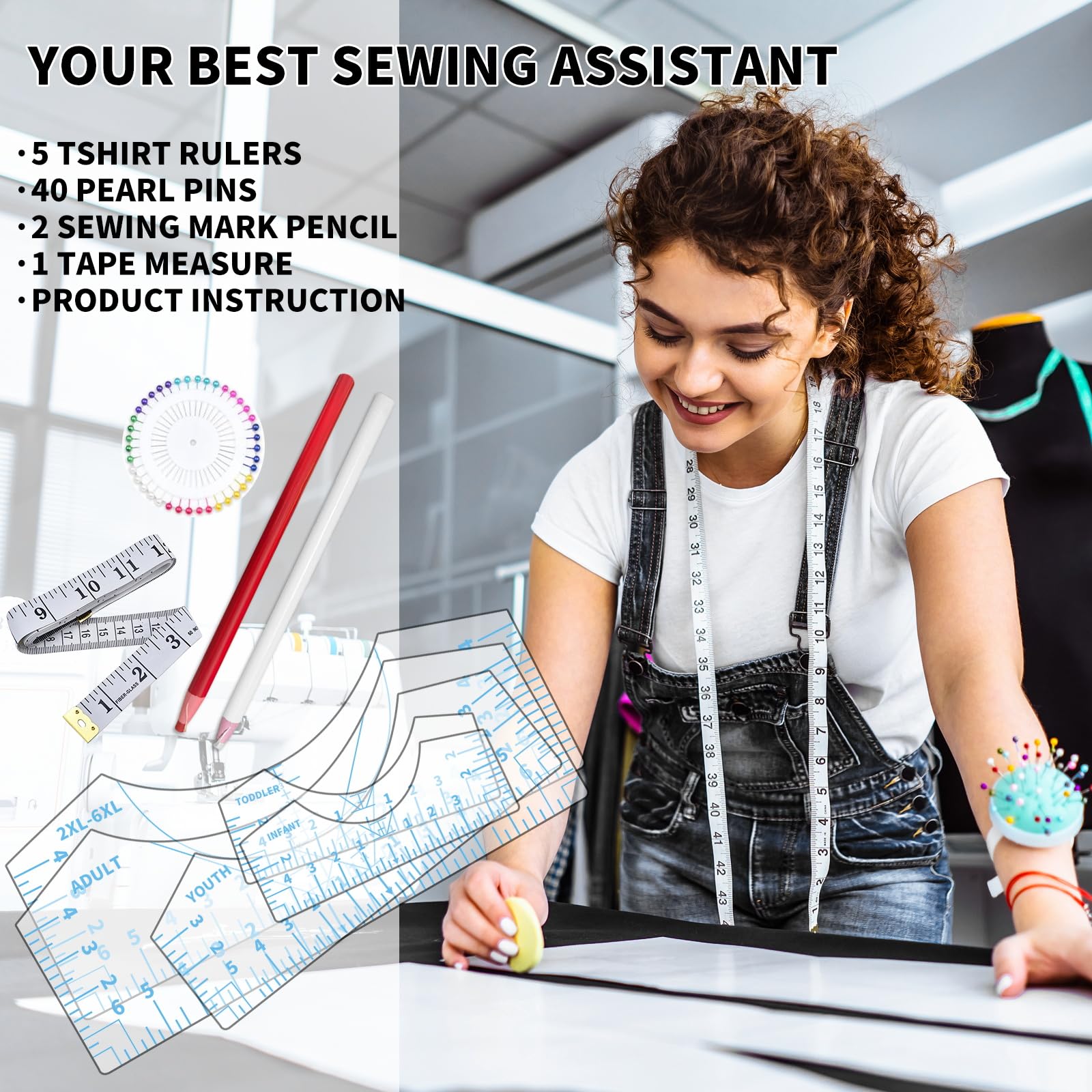 🥼【What You Get】Tietoc ORIGINAL Tshirt vinyl alignment tool set contains 5pcs all kinds size t shirt rulers, 1pcs soft measuring tape, 1pcs 40 multi-color pins for fixing & product instruction to let you know the size and placement of your design. These rules can meet the design needs of the whole family clothes. Free your imagination and enjoy DIY fun from now on!