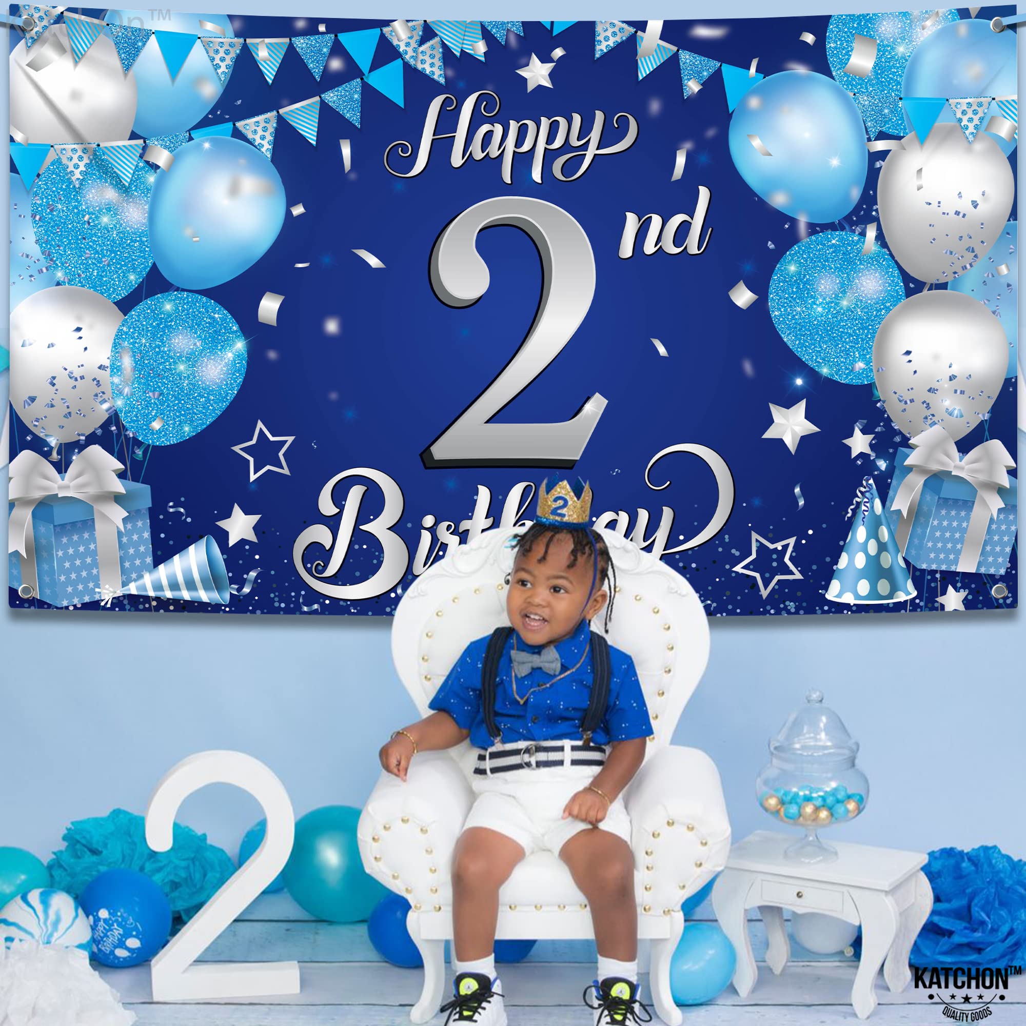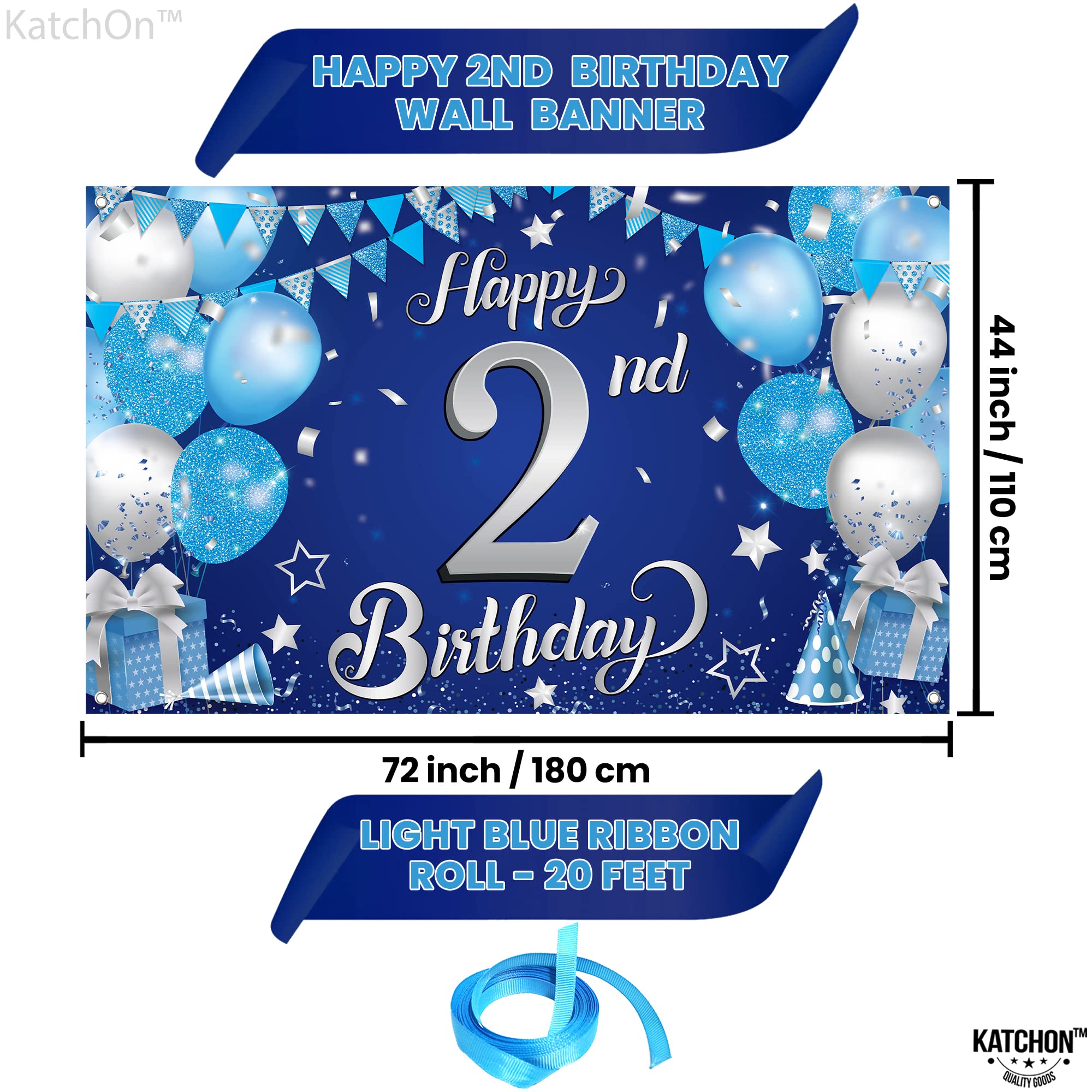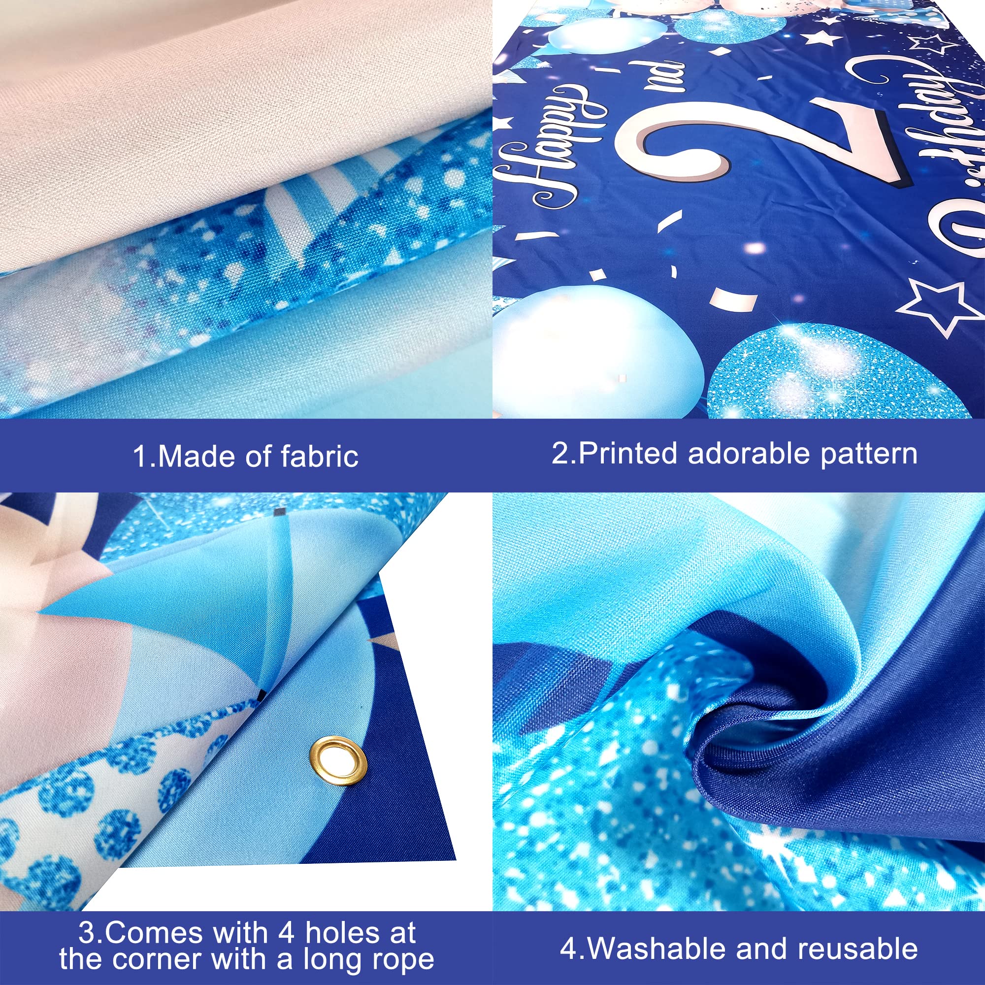 LARGE SIZE - 72 x 44 INCH | LUXURIOUS HAPPY BIRTHDAY BANNER : Celebrate your little one's 2 year birthday in style with our Happy 2nd Birthday Wall Banner. A alluring birthday banner backdrop quoting " Happy 2nd Birthday" featured with blue and Silver elements, printed with blue glittering balloons stars, Confetti, gifts that adds the beauty and make it noticeable leaving a deep impression on guests.