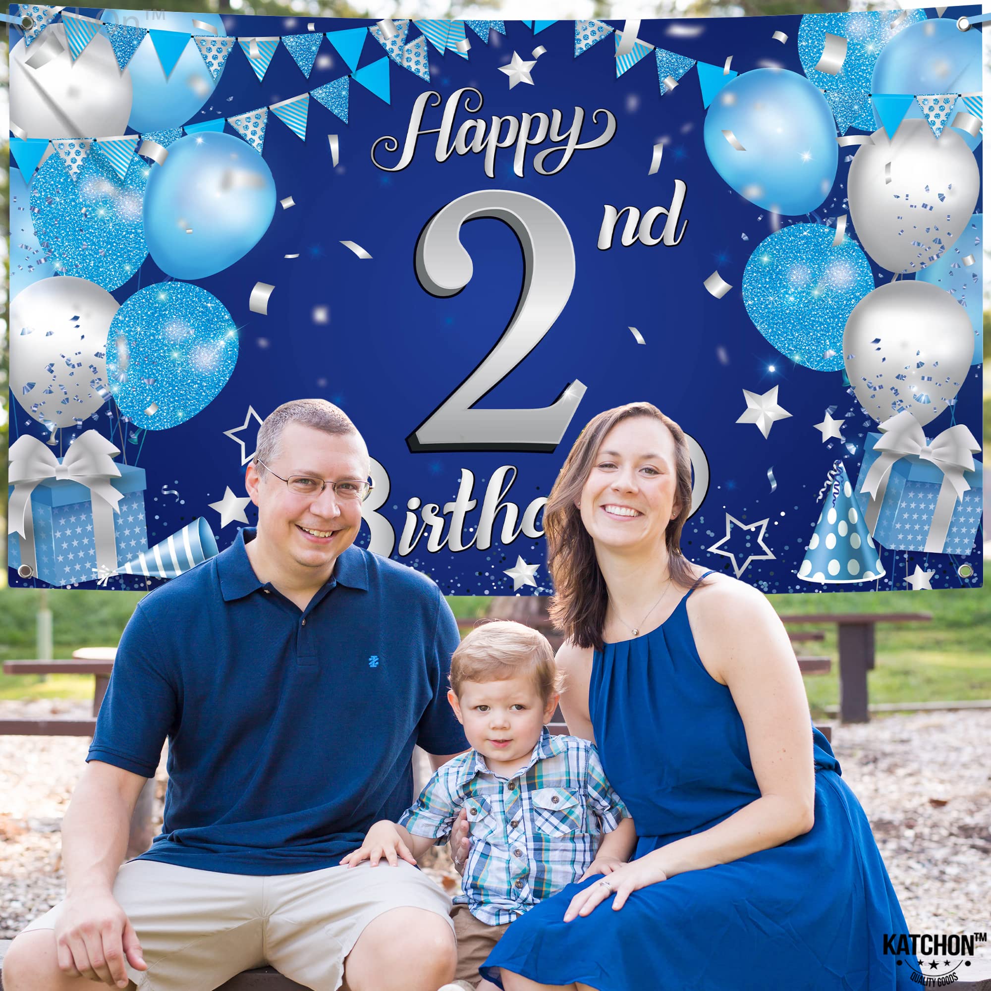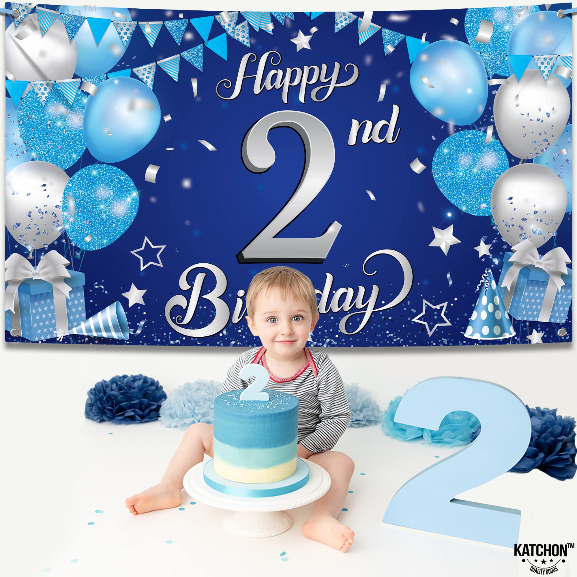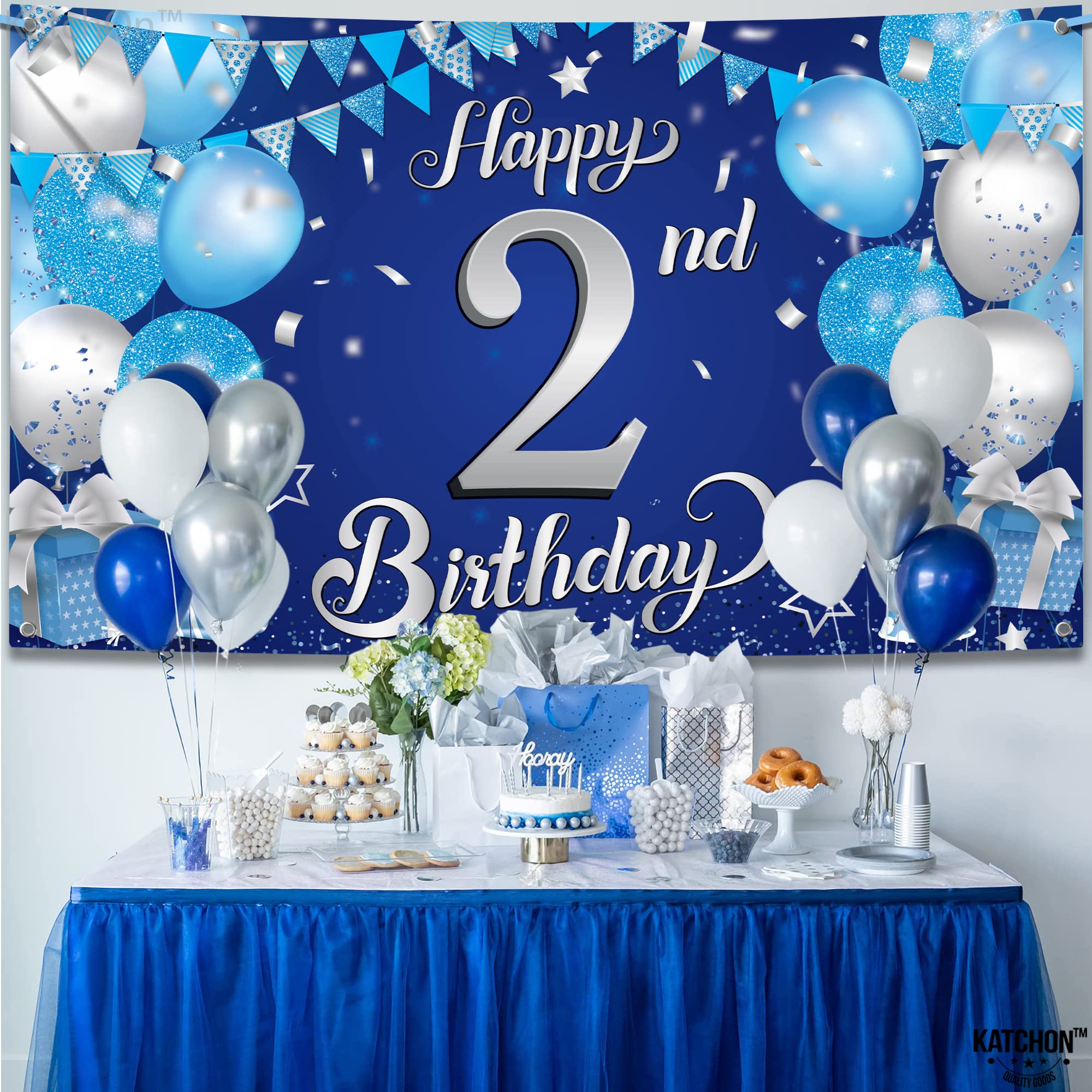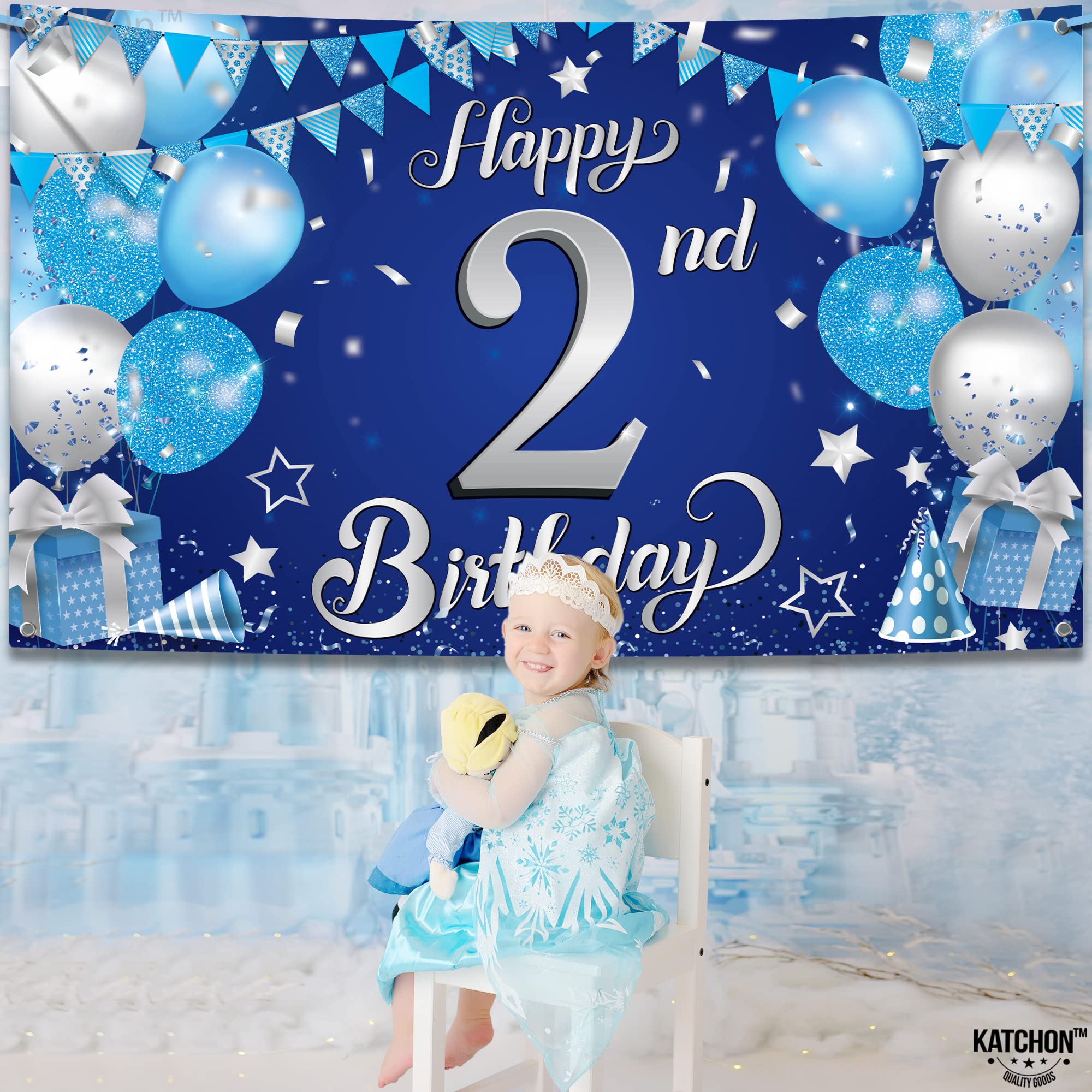 LARGE SIZE - 72 x 44 INCH | LUXURIOUS HAPPY BIRTHDAY BANNER : Celebrate your little one's 2 year birthday in style with our Happy 2nd Birthday Wall Banner. A alluring birthday banner backdrop quoting " Happy 2nd Birthday" featured with blue and Silver elements, printed with blue glittering balloons stars, Confetti, gifts that adds the beauty and make it noticeable leaving a deep impression on guests.