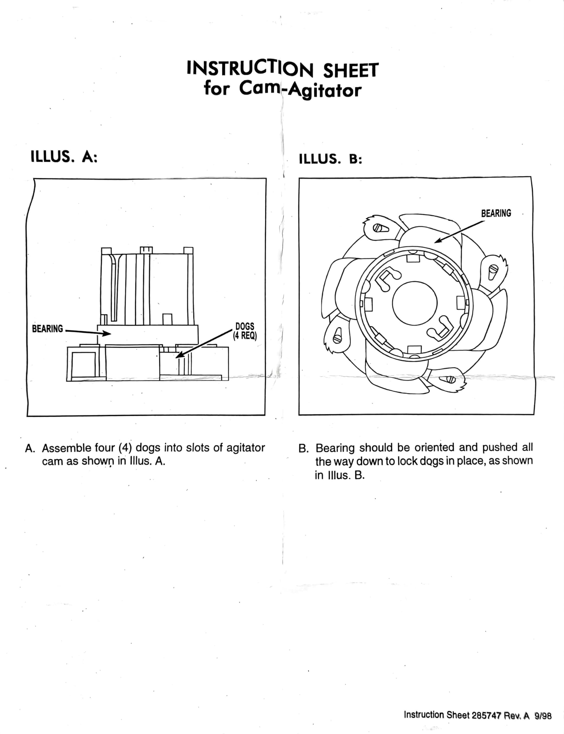 Product Information: Kit Number 285811, Agitator Repair Kit. Upon purchase, you will receive one 285811 Agitator Repair Kit containing 4 agitator claws, a medium-length cam, a cover seal, agitator bolt washers, and thrust washers.