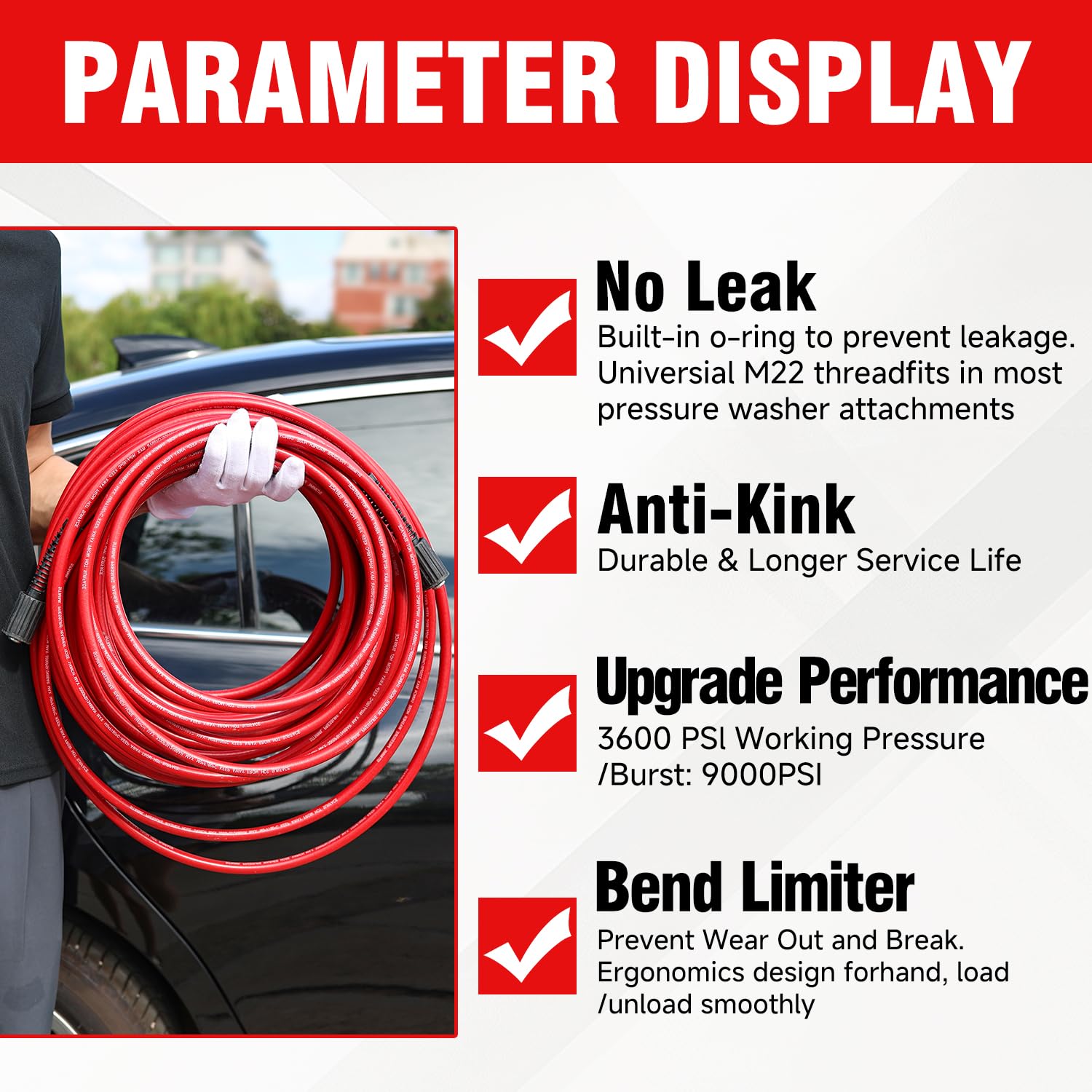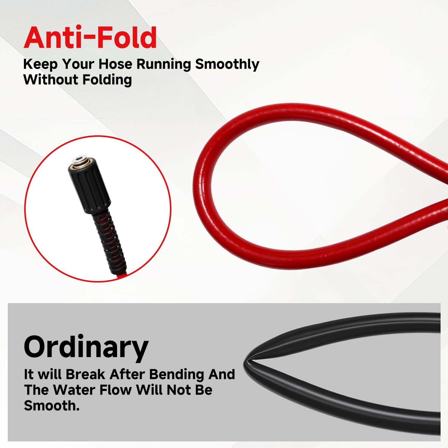 Anti-Tangling Technology: Experience unparalleled flexibility and convenience with our anti-tangling design. The innovative structure of the hose prevents kinks and tangles, allowing you to focus on your high-pressure cleaning tasks without interruptions. Carry, drag, roll up, and store the hose effortlessly with minimal hassle