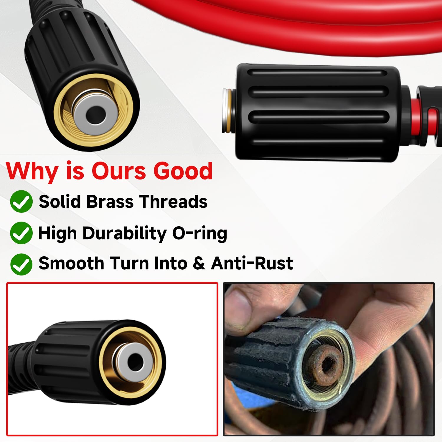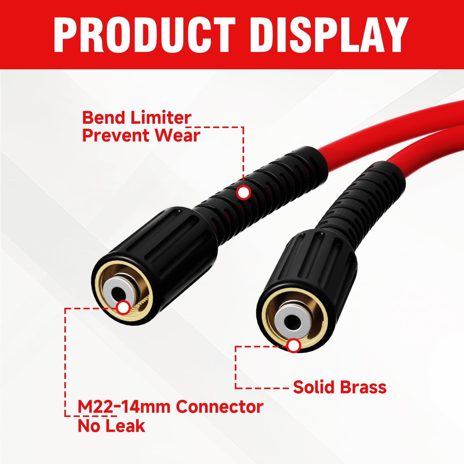 Durable Premium Construction: Engineered for durability, our high-pressure washer hose boasts a robust structure that withstands wear, corrosion, and harsh weather conditions. The use of high-quality materials ensures an extended lifespan, making it a reliable partner for all your residential and light commercial pressure washing projects