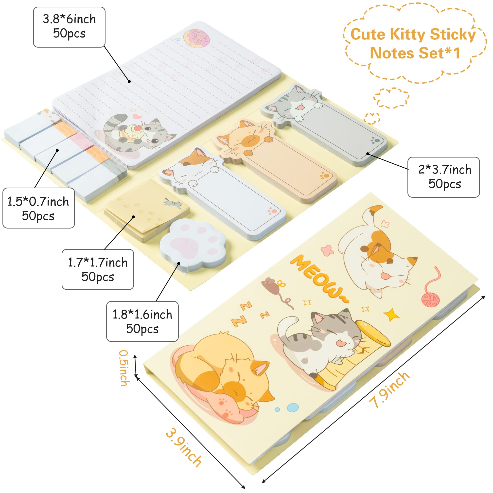 Cartoon Cat Sticky Notes Set: You will get a set of cat sticky notes, there are many self-adhesive note pads in different styles and sizes. This set of sticky notes with perfect size, which is easy to carry and fit in your bag. 50 sheets per pad, 550 sheets in total. Meet your various needs