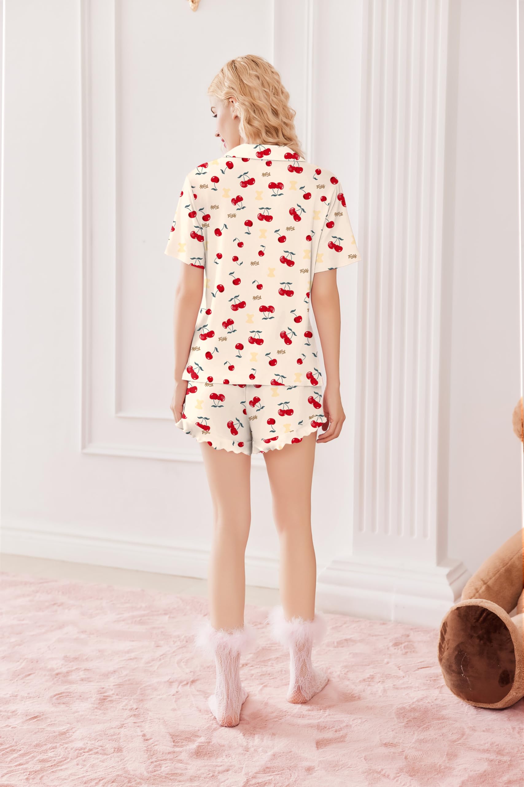 【Fit Occasion】:This pajama set features a relaxed fit, casual cute, Perfect for lounging and sleeping, pajama party, girls day, bridal sleepwear, indoor, living room, bedroom, hotel, vocation, travel, and daily sleepwear. And comfy pajama set will keep you from daily stresses and provide you a soft and comfortable night