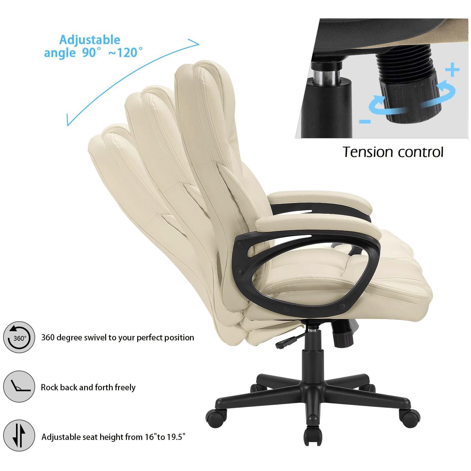 Comfortable High back office chair with cushioned back and seat upholstered provide extra support,large thick pad, soft texture slow down the pressure of the sedentary