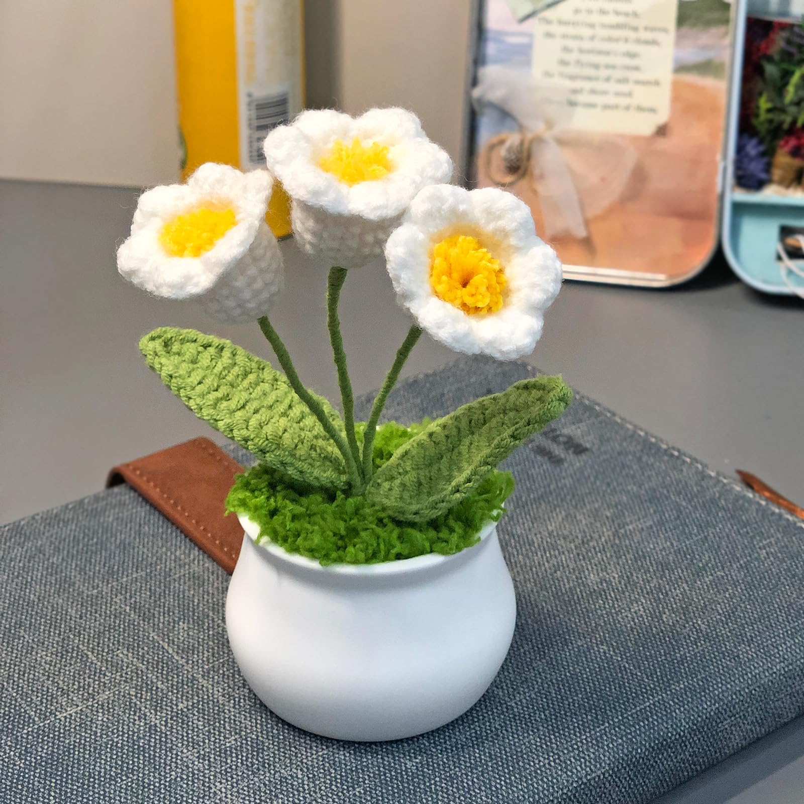 1.【Joekaran's Details】 No exposed wires in flower cores & stems; Realistic crochet grass in pots; Request returns if not as described.