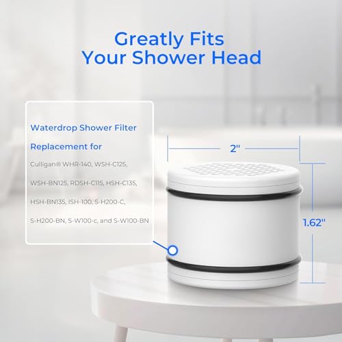 【Compatible Models】Waterdrop shower filter replacement for Culligan WHR-140, Compatible with Culligan filtered shower heads WSH-C125, WSH-BN125, RDSH-C115, HSH-C135, HSH-BN135, ISH-100, S-H200-C, S-H200-BN, S-W100-c, and S-W100-BN