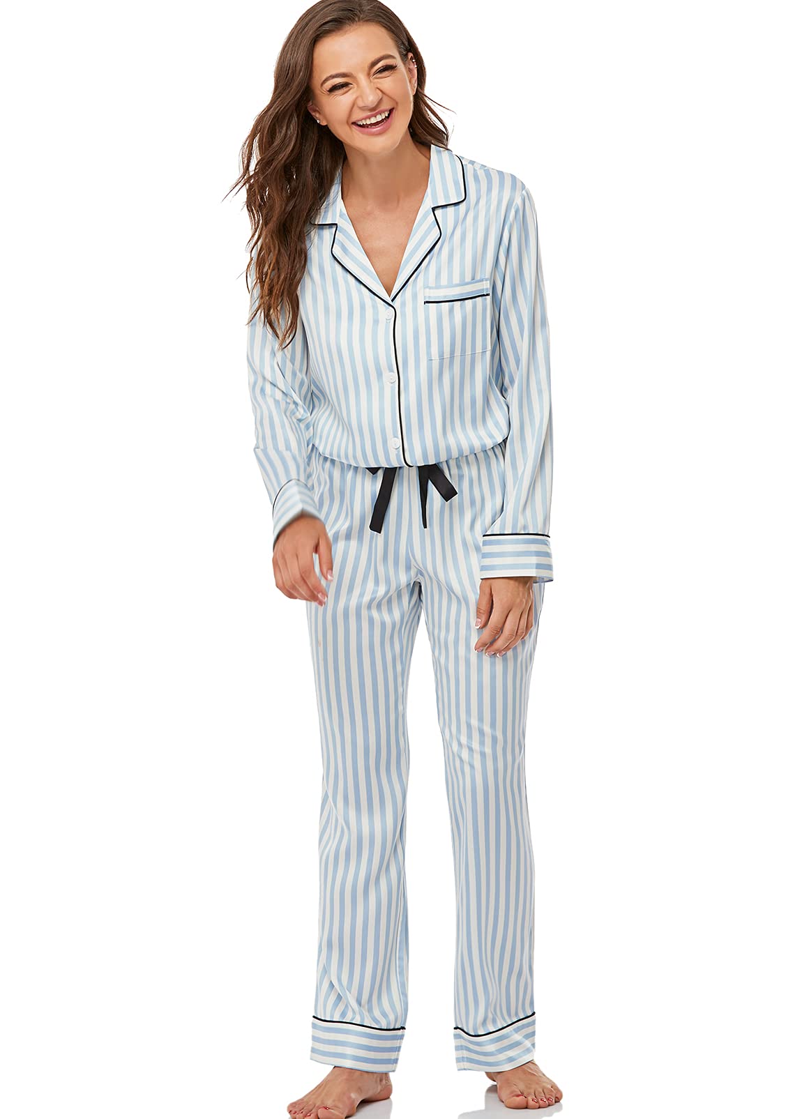 COMFORTABLE FABRIC: Made of high quality silk-like satin fabric, this pajama set is soft and lightweight, perfect for sleeping, lounging, or daily casual wear.