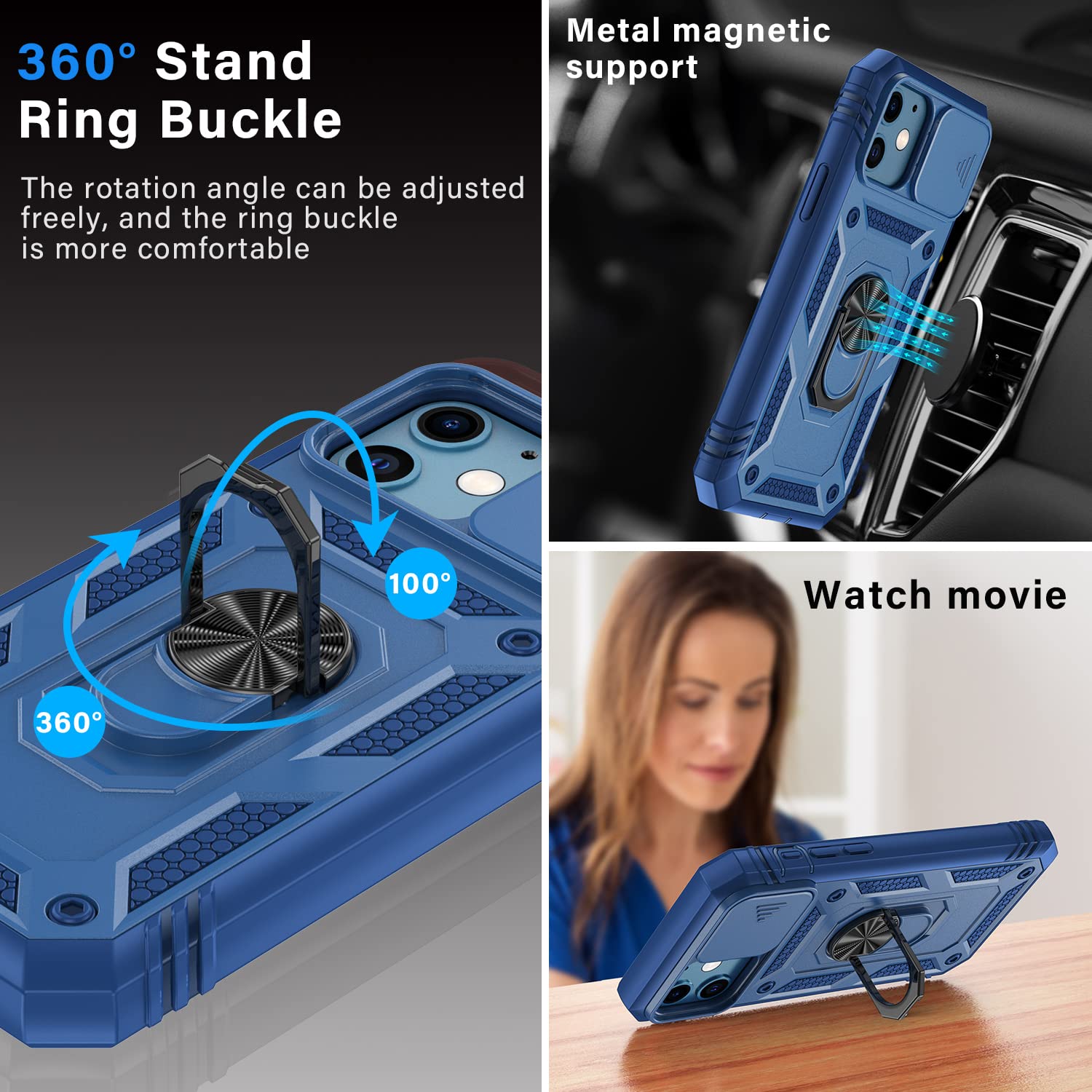 【Magnetic Ring Kickstand】The iPhone 12 & 12 Pro case has a built-in 360°ring bracket that can be adjusted to the most comfortable angle for watching videos or e-books. It can be attached to the car mount when driving, which is convenient for navigation when driving.