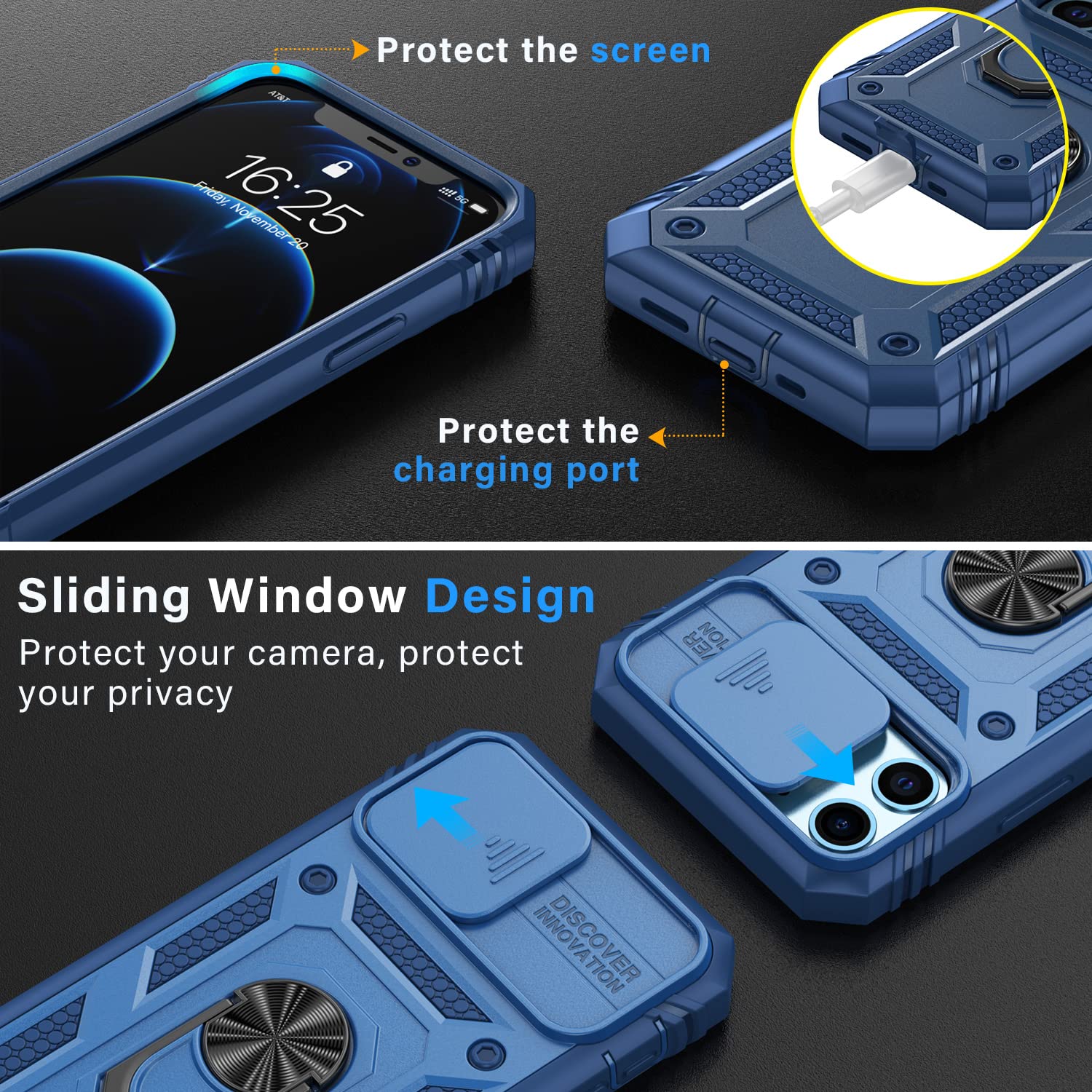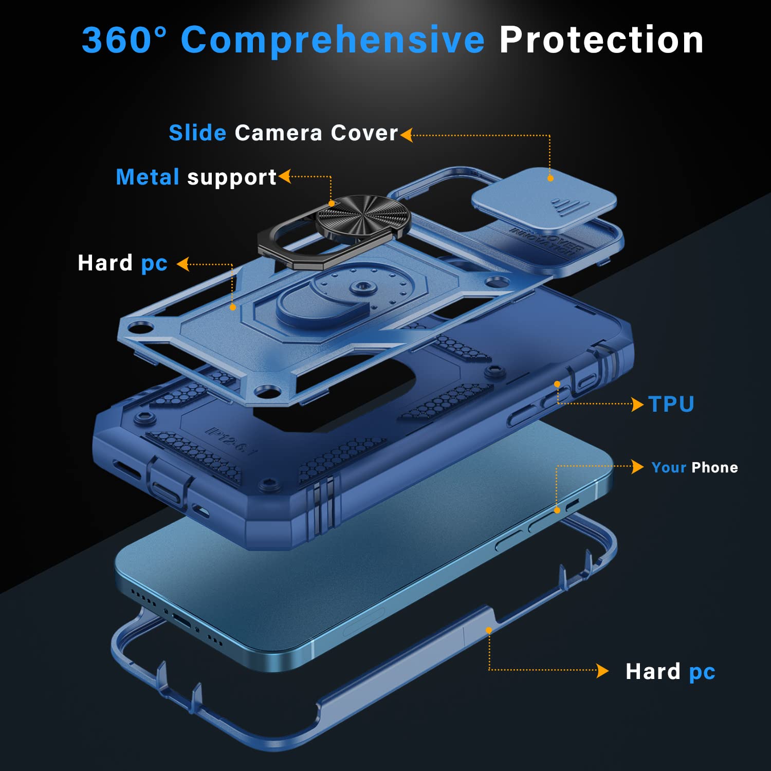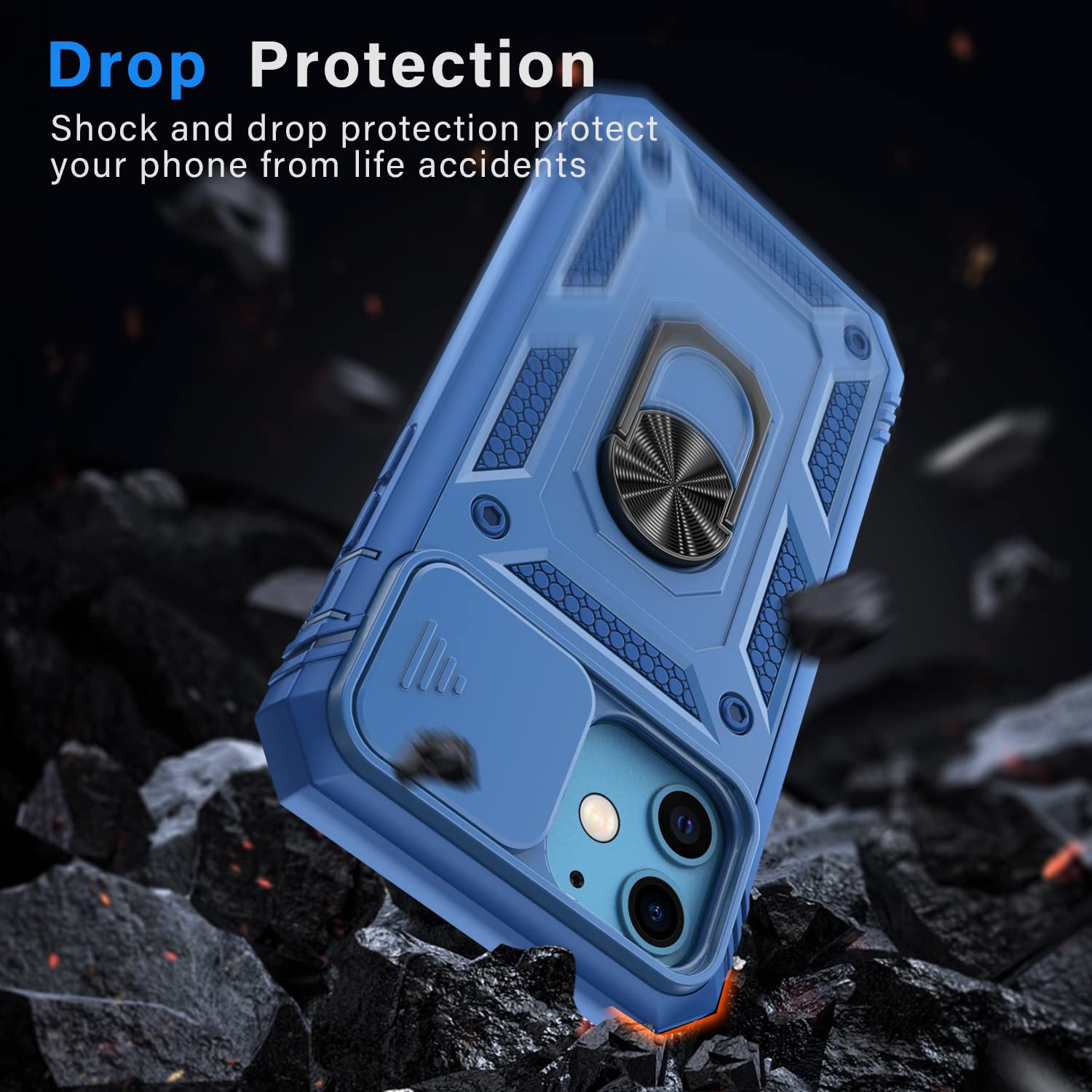 【Sliding Camera Lens Cover】The iPhone 12 & 12 Pro upgraded phone case is equipped with a sliding protective cover for the rear camera lens, the frame is 3mm higher than the Camera lens, and the sliding cover is flexible but not loose.
