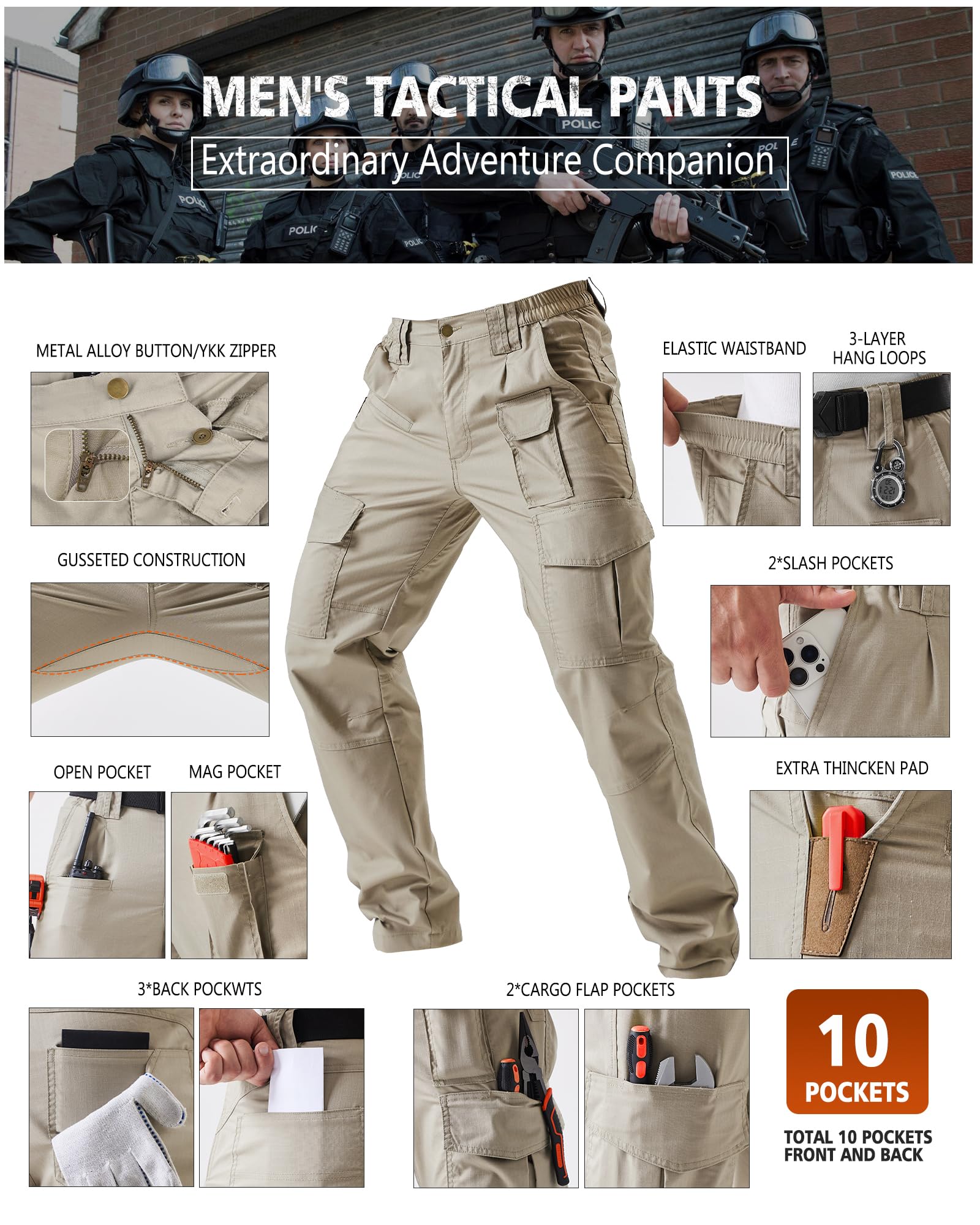 Maximize Efficiency: 10 strategically designed pockets for total organization. Engineered for professionals who need quick access to tools and personal items, these men cargo pants feature a comprehensive pocket system. With 2*deep slant pockets (including a discrete inner security pouch), 2*spacious cargo tool pockets, 1*open-top pocket, 1*mag pocket, and 3*rear pockets, you’ll always have what you need right at your fingertips
