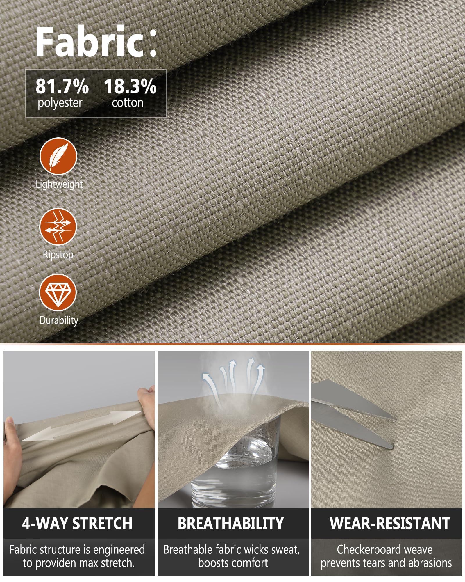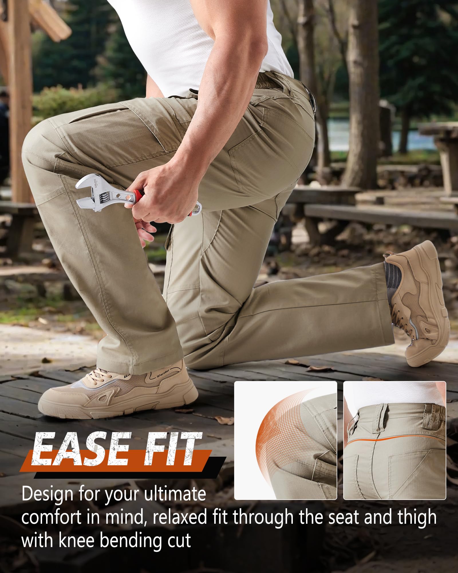 Built for Tough Jobs: Rip-stop fabric with superior flexibility & durability. Crafted for hardworking professionals, these men's work pants are made from a high-performance blend of polyester, cotton, and spandex. The advanced rip-stop fabric resists tears, abrasions, stains, and dust. Reinforced stitching, pad and bar-tacked stress points ensure these work cargo pants can handle daily wear and tear, making them a long-lasting investment for anyone in demanding fields