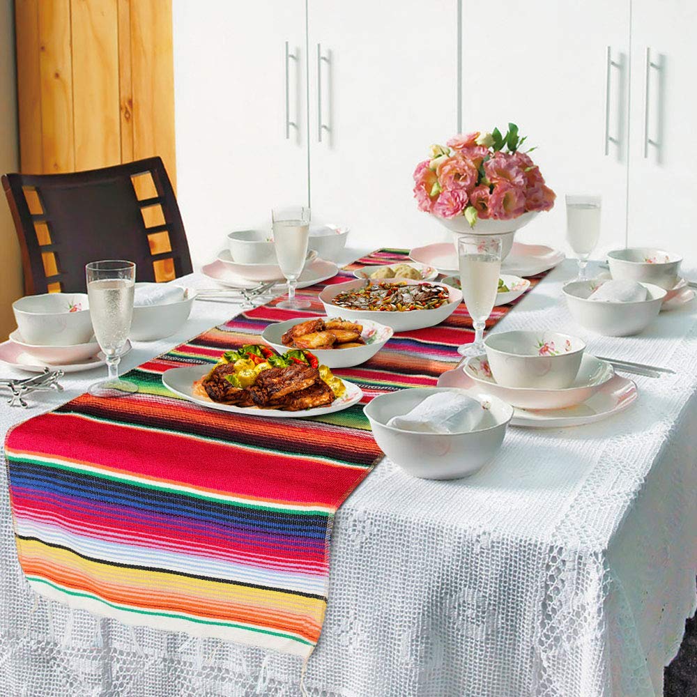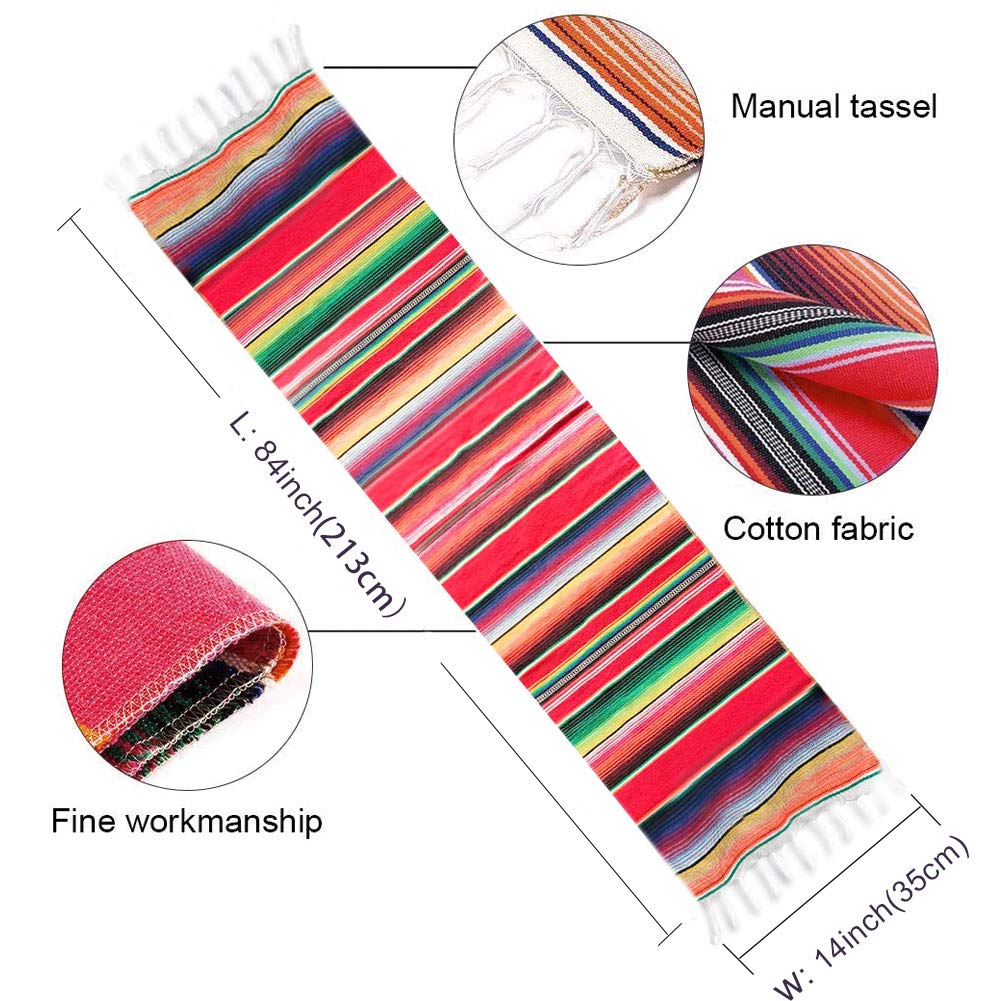 MULTI-FUNCTION: Mexican table runner suitable for table cloth, picnic rugs, blanket, wall decoration, outdoor table, coffee table and just anything you must cover. It is portable with mini size and light weight.