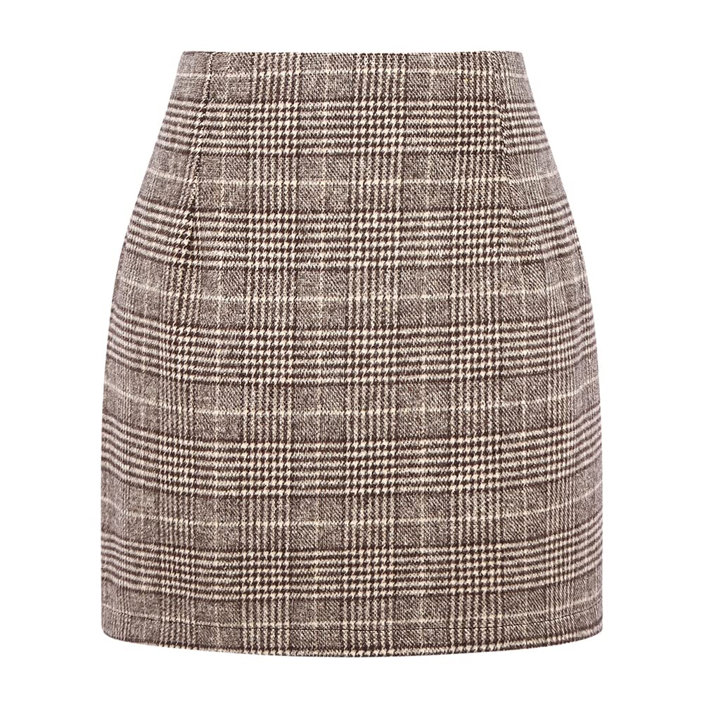 Style: Casual slim fit bodycon flannel plaid mini skirts for junior/lady