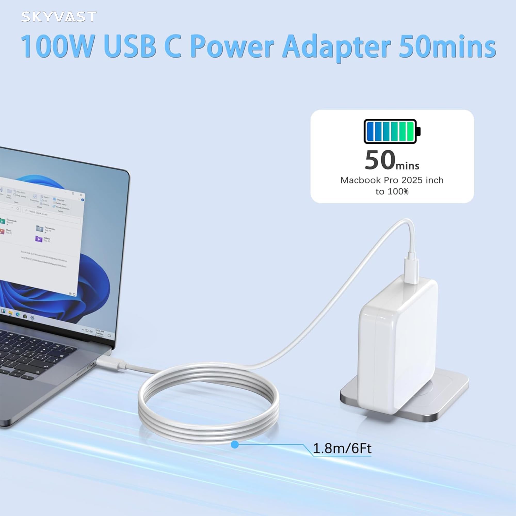 Mac Book Pro Fast Charger,100W USB C Charger Compatible with Mac Book Air 13,15 Inch 2023/2024/2025 Fast Charging Work with 100W 96W 87W 61W USB Type C Charger