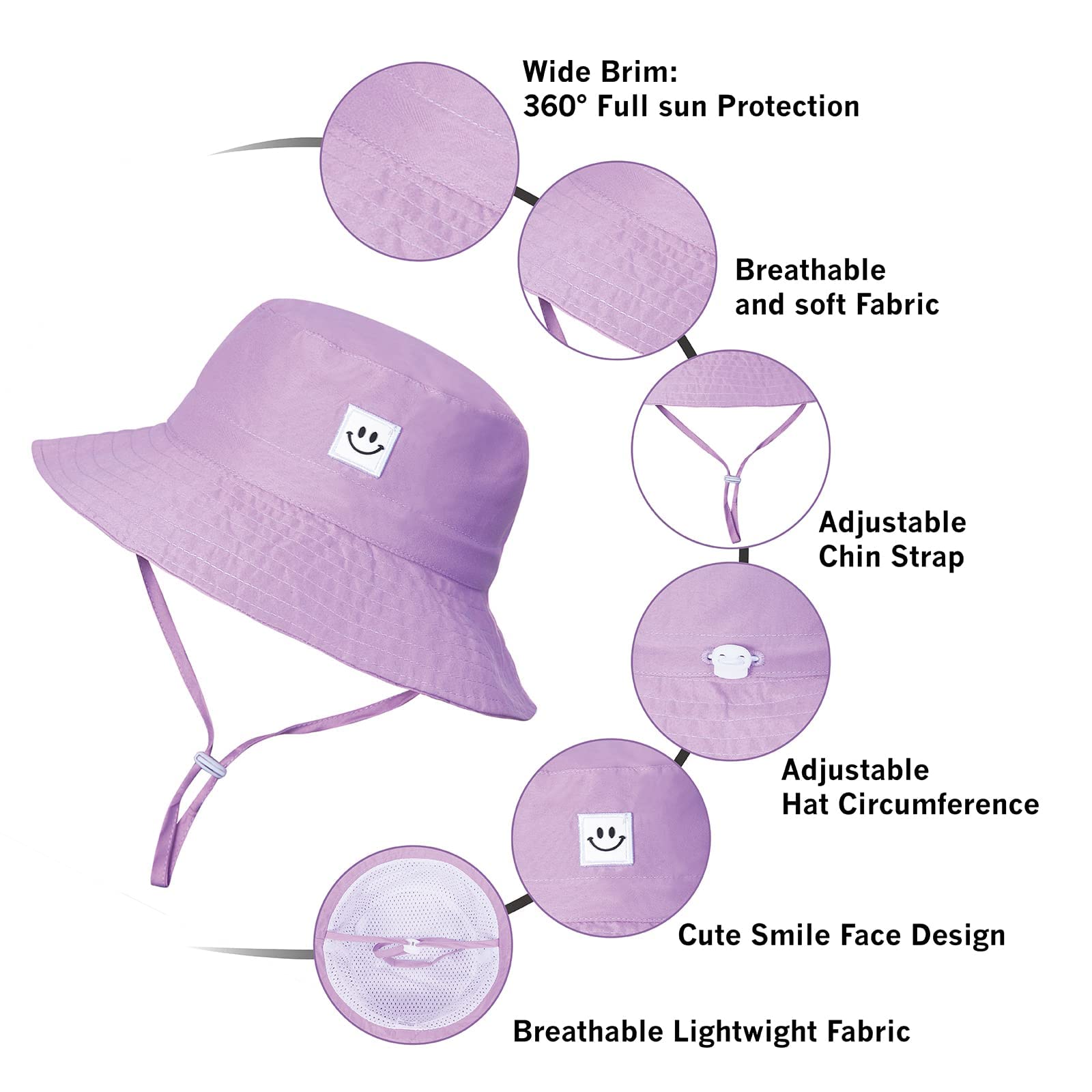 Material: The smile face baby sun hat made of high quality polyester(UPF 50+ UV sun protective fabric), quick-drying, breathable toddler sun hat keeps baby cool and comfortable