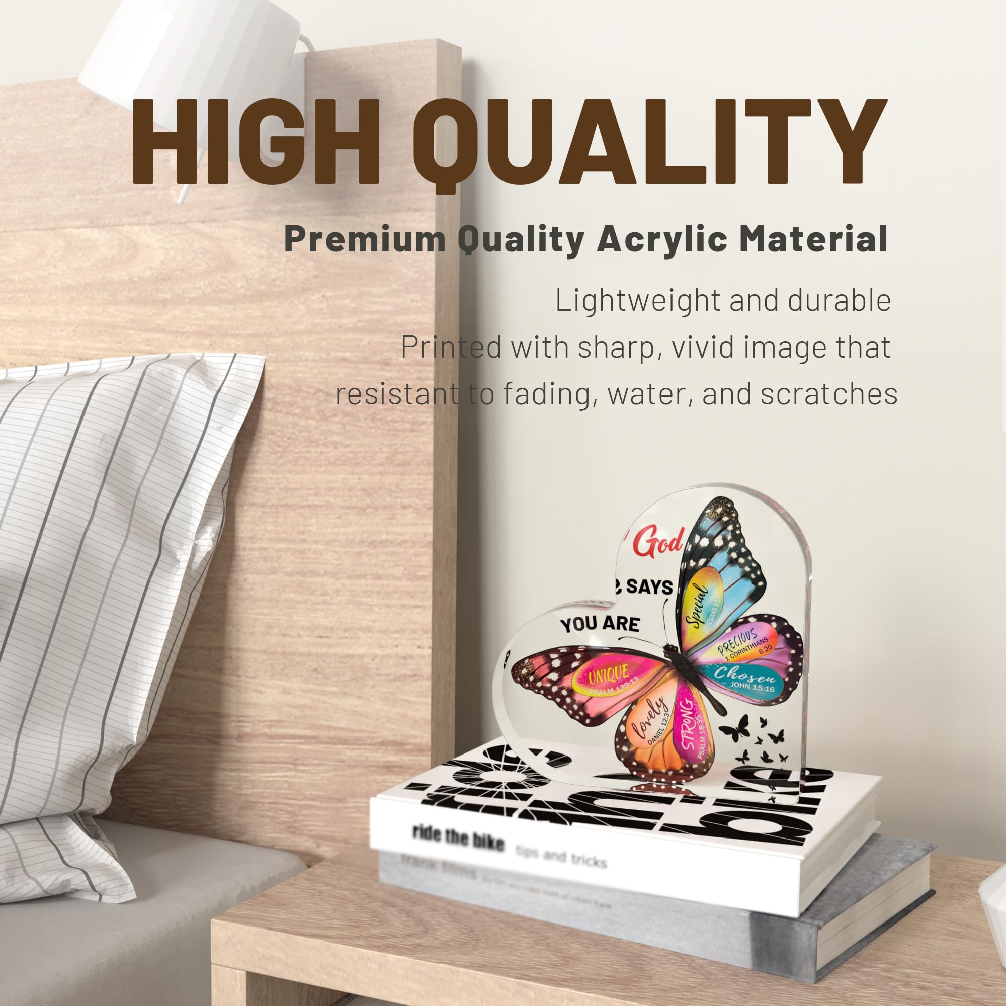 Inspirational Gift for Women Friends: Every butterfly is unique, much like a human, which was the design inspiration behind this desk decor. This Bible paperweight is designed to remind the user that everyone is a distinct individual, chosen by God and possessing inherent worth and value. It provides comfort and inspiration during difficult times, and can serve as a source of encouragement to help overcome challenges