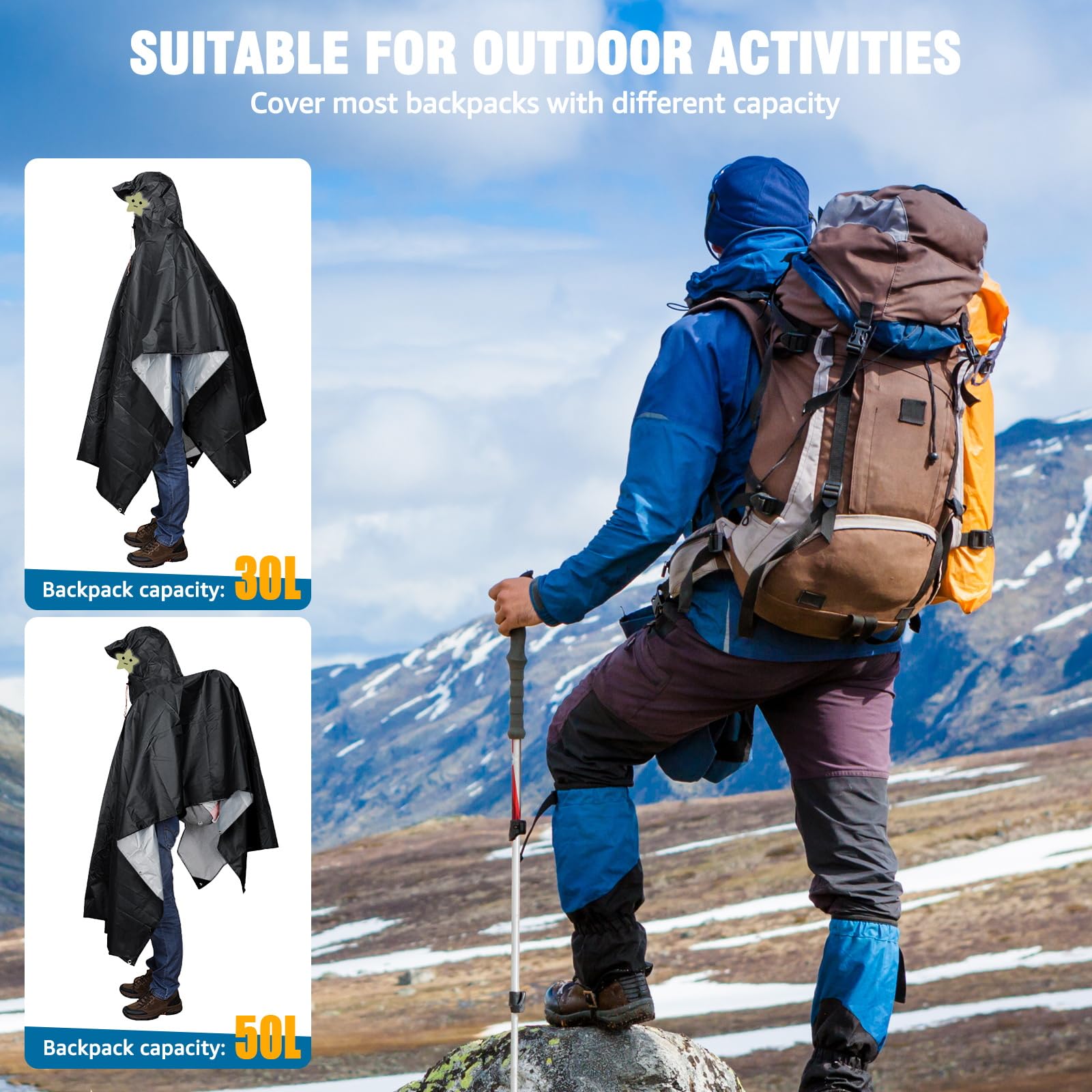 Breathable & Comfortable: Don't worry that it will make you very hot because the arm holes & bottom are loose enough to allow air circulation.The size is large enough to cover up a backpack as well. It can help keep your backpack dry and prevent water from seeping through and damaging your items. It offers excellent freedom of movement, which makes it very comfortable to wear. Adjusting the snap fasteners on each side it can accommodate a range of body sizes and shapes.