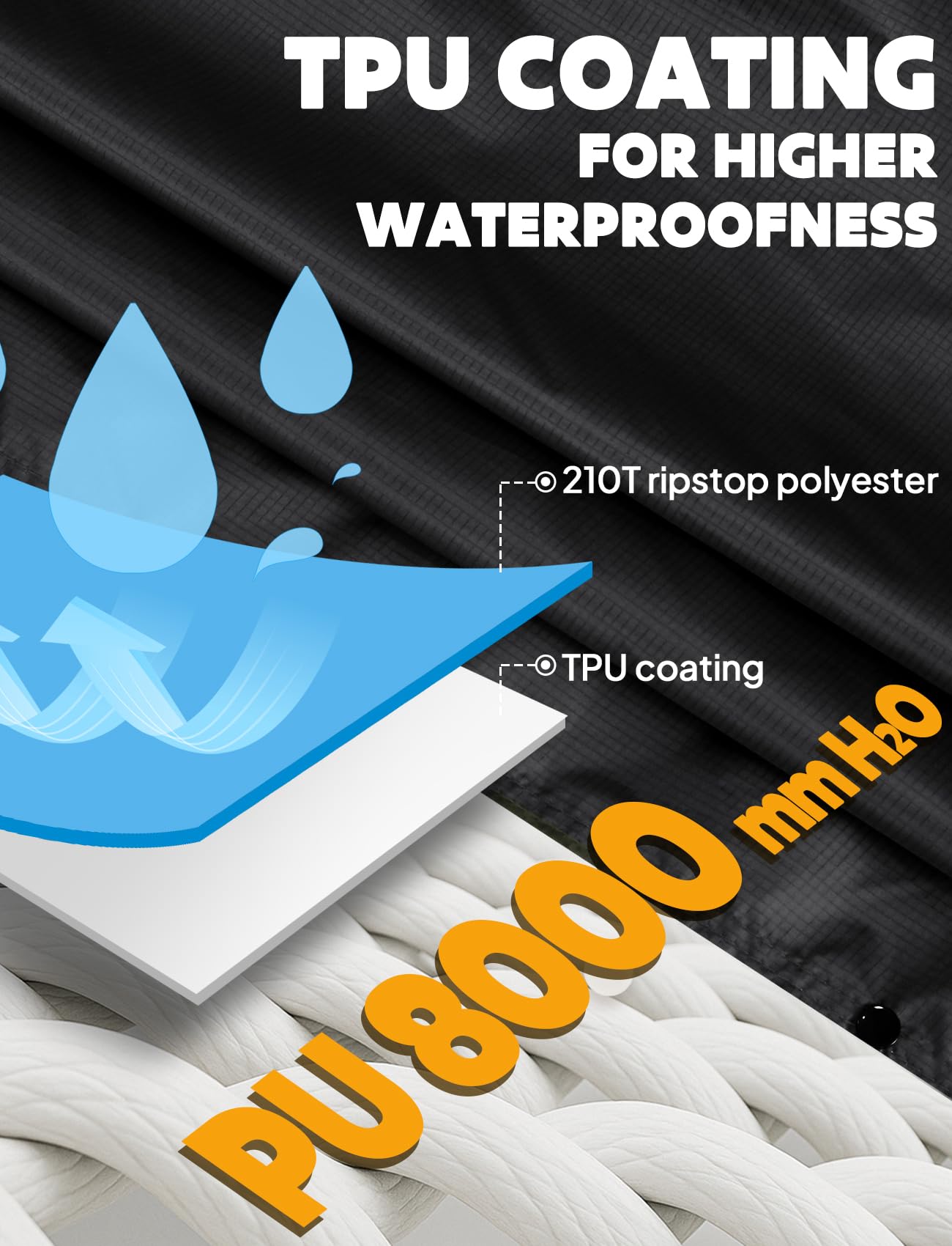 Waterproof and Sturdy Material: The rain poncho is made of 210T ripstop polyester + TPU coating, this rain poncho is PU8000MM waterproof.To enhance the waterproofing capabilities of a rain poncho,we use techniques such as seam sealing or taping to ensure that water cannot seep through the seams.It comes with a drawstring hood, hook and loop fasteners along the sides ensures the optimal fit,which is good for protecting your head and face.
