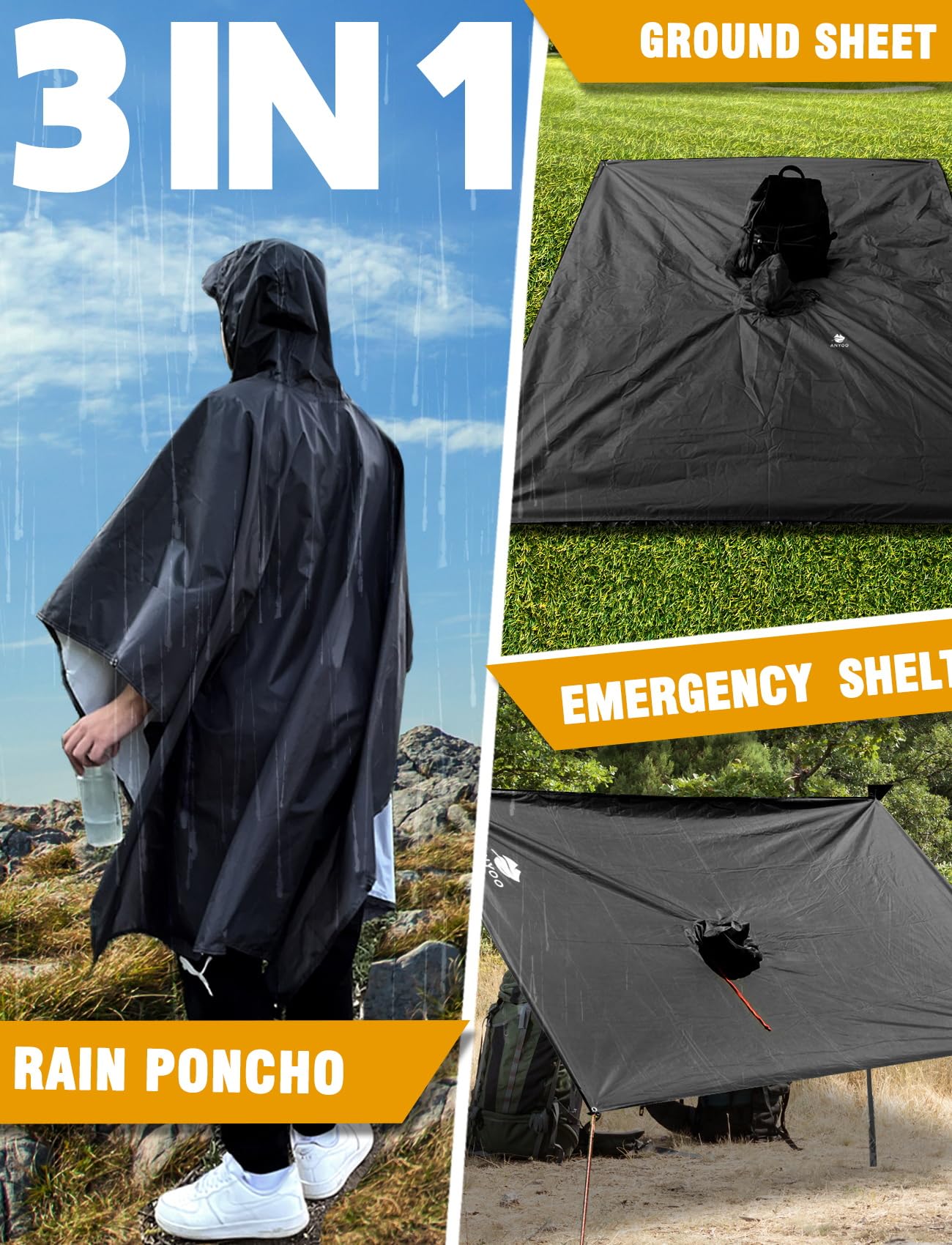 Multipurpose: The three in one multi-functional poncho can be used as floor mat, cape,a simple shelter and canopy.The poncho has eyelets on the hem for building a poncho shelter or a ground sheet, and hook & loop fasteners on the sides allowing you to use it as a sleeping bag cover.It can also provide a barrier against wind or serve as a makeshift shelter if needed. Good for the traveler, outdoor enthusiast, or for any outdoor activity with rain on the horizon.