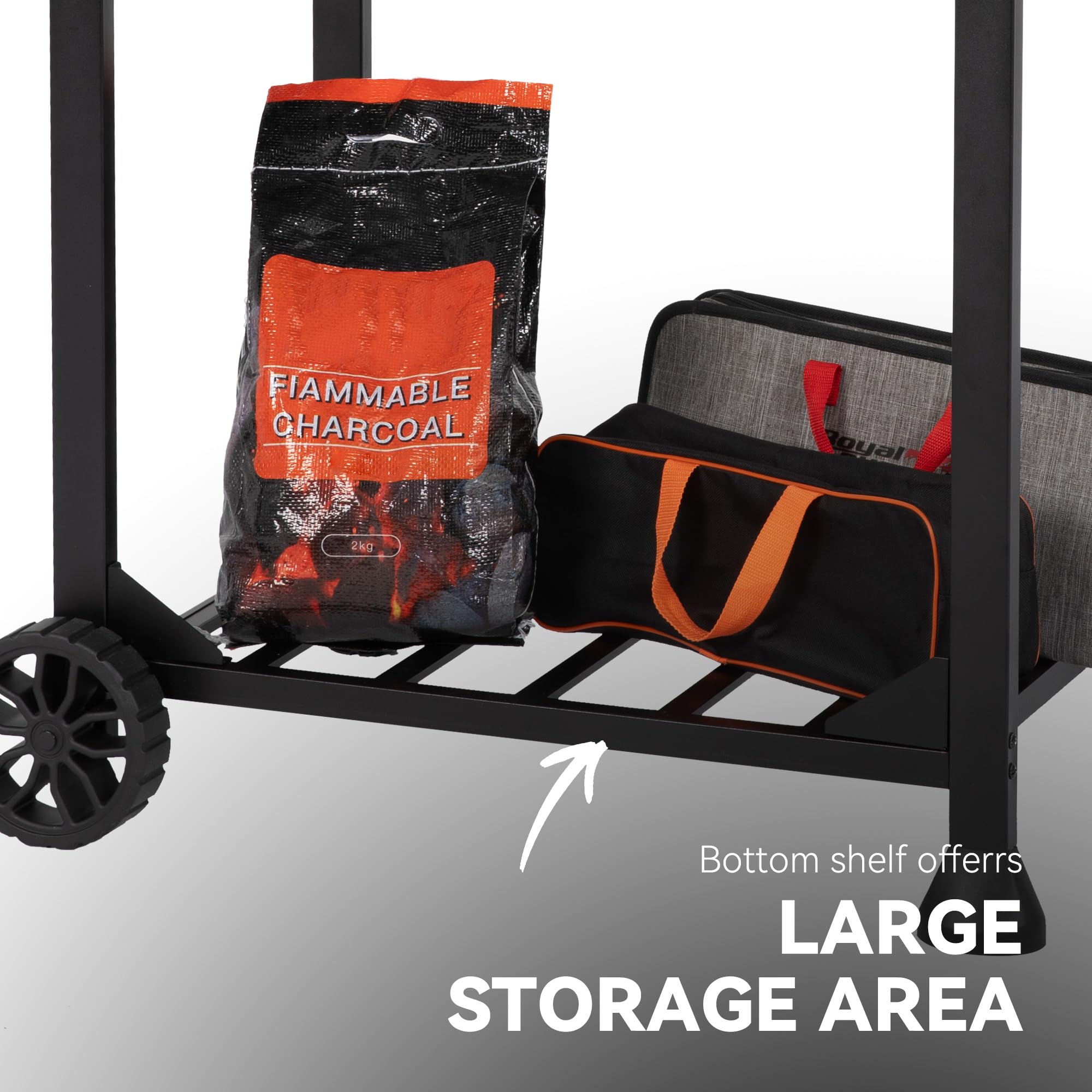 Ample Prep & Storage Space: Two side tables provide extra prep or working space, holding your seasonings, plates and grilling tools for quick access. A large bottom shelf is perfect for accommodating big bags of charcoal, grilling utensils and much more