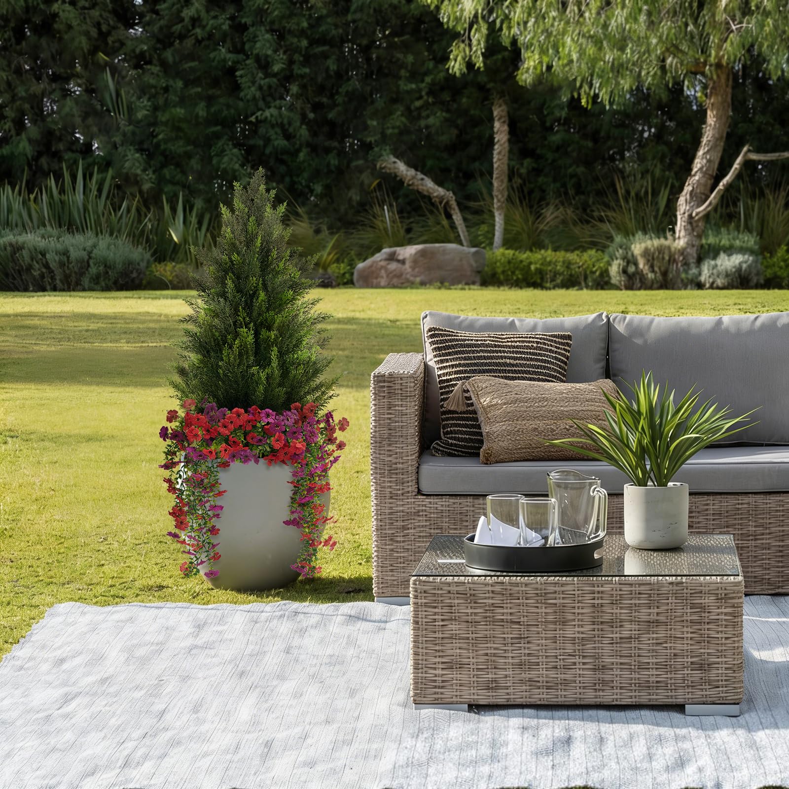 Multi-purpose Decoration: Are you still worried about having boring, monotonous decorations? Our artificial cedar topiary tree brings you endless possibilities! Whether it is for home, office, commercial space, or holiday decorations, this cedar tree can easily create a different atmosphere and style.