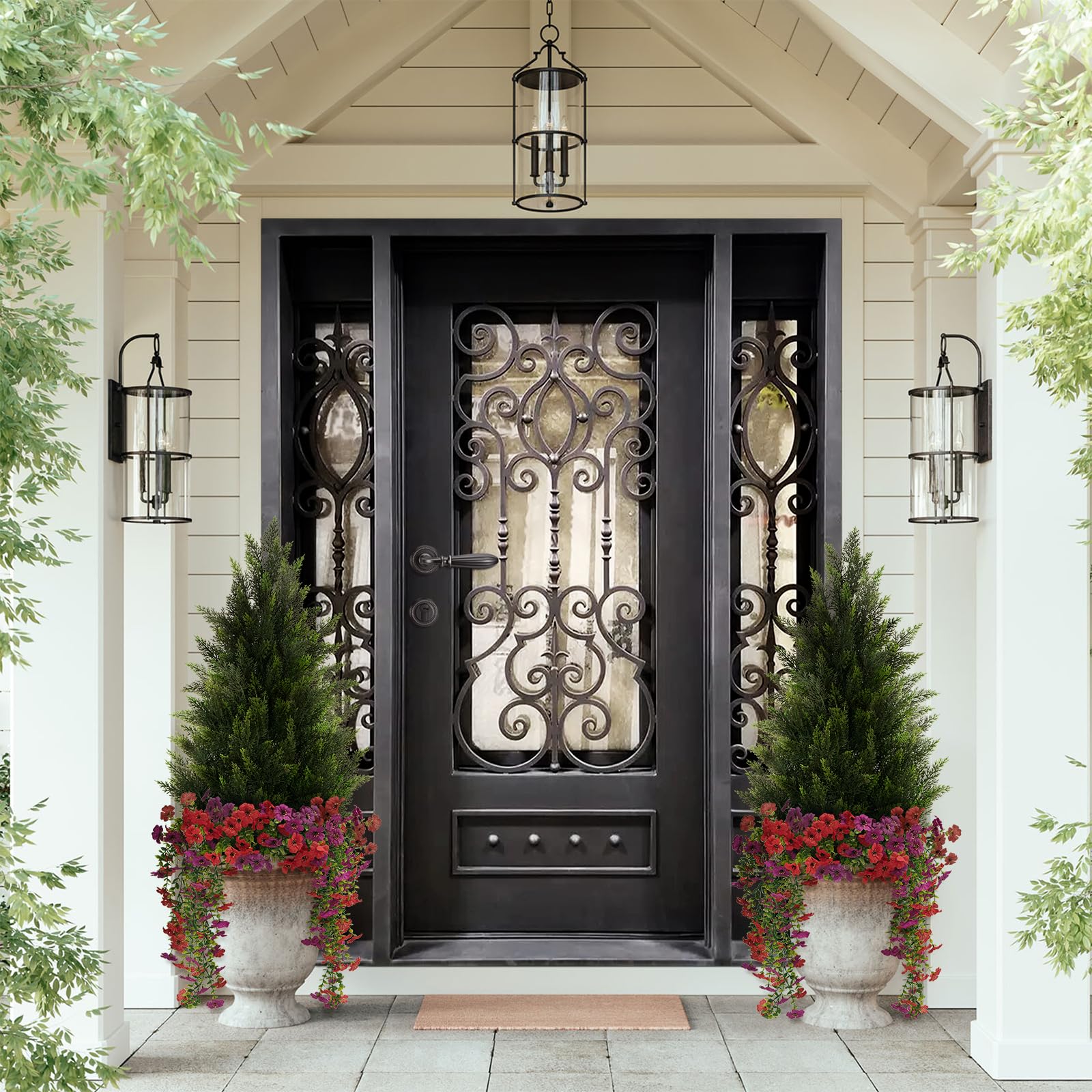 Includes 12 Bundles Silk Flowers: Includes a built-in decorative bouquet designed to enhance spring-themed and everyday decor. The bouquet adds extra visual interest and pairs well with the cedar leaves, creating a balanced and coordinated look. No need to purchase or match separate floral accessories, saving time and effort while providing an easy way to refresh your space with a seasonal decorative accent.