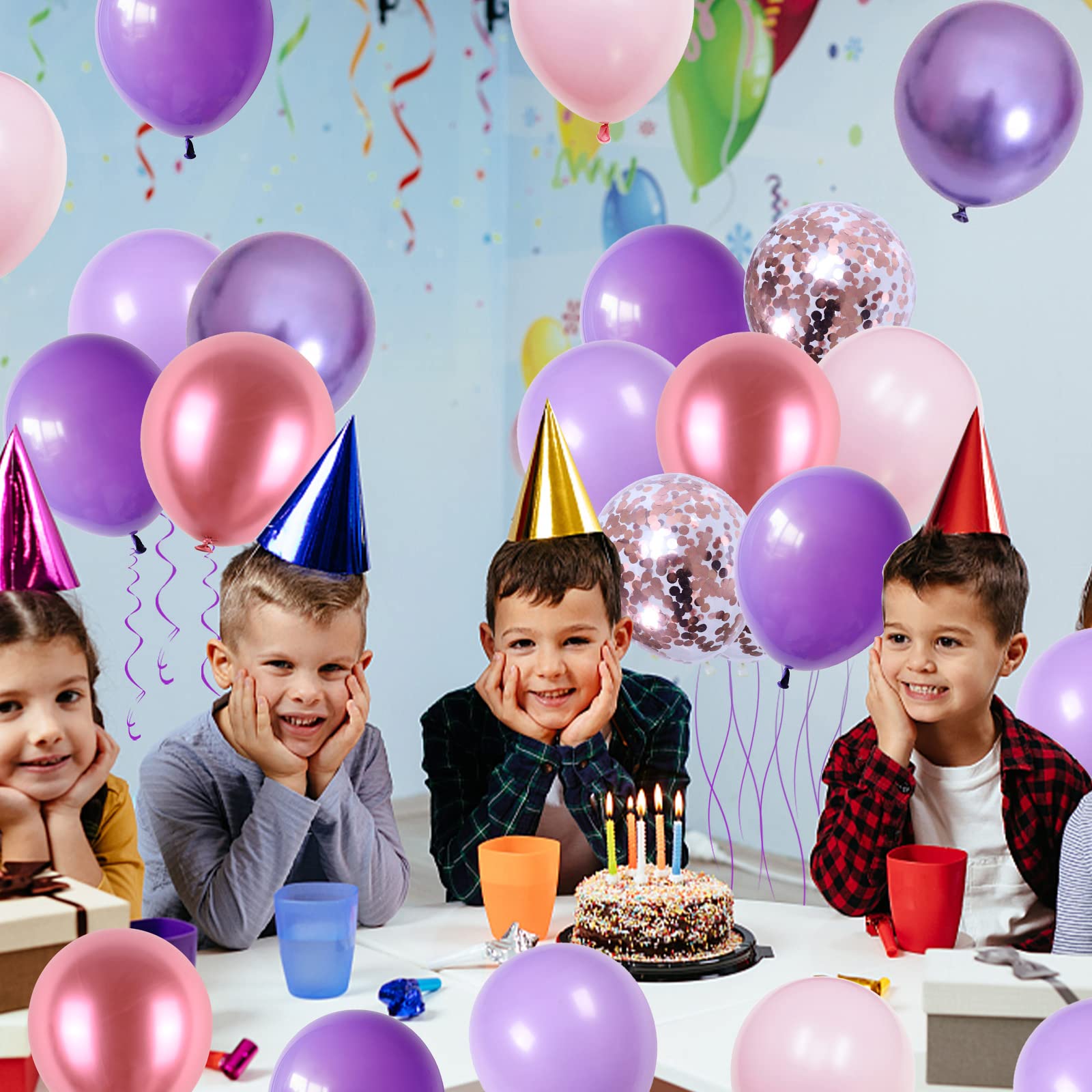 PREMIUM MATERIAL: Much thicker than others, non-toxic, tasteless, reusable, balloons pink purple red gold, designed to last for hours of festive fun, made with high-quality latex that stays inflated throughout your event, no need to worry about balloons deflating mid-party; Kid-Safe, without harmful chemicals, and suitable for children aged 3 and up