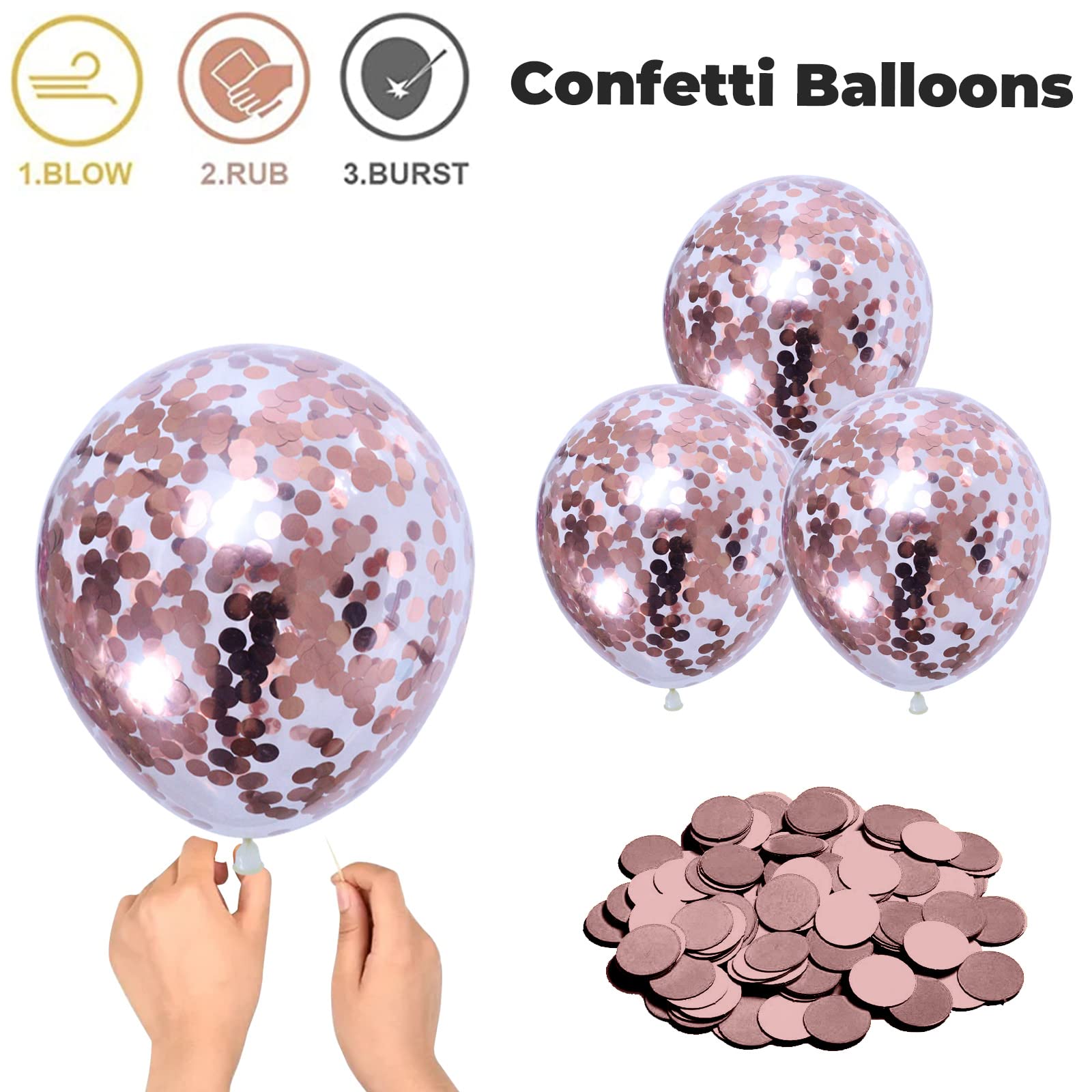 EASY TO INFLATE: Save time and hassle with purple pink red gold party balloons, which can be easily inflated with a hand pump or a high-quality helium tank, making party set-up quick and easy, no need to spend hours inflating balloons one-by-one, the filler can be water, air, helium or oxygen, stick the confetti to the side, make balloons look more beautiful