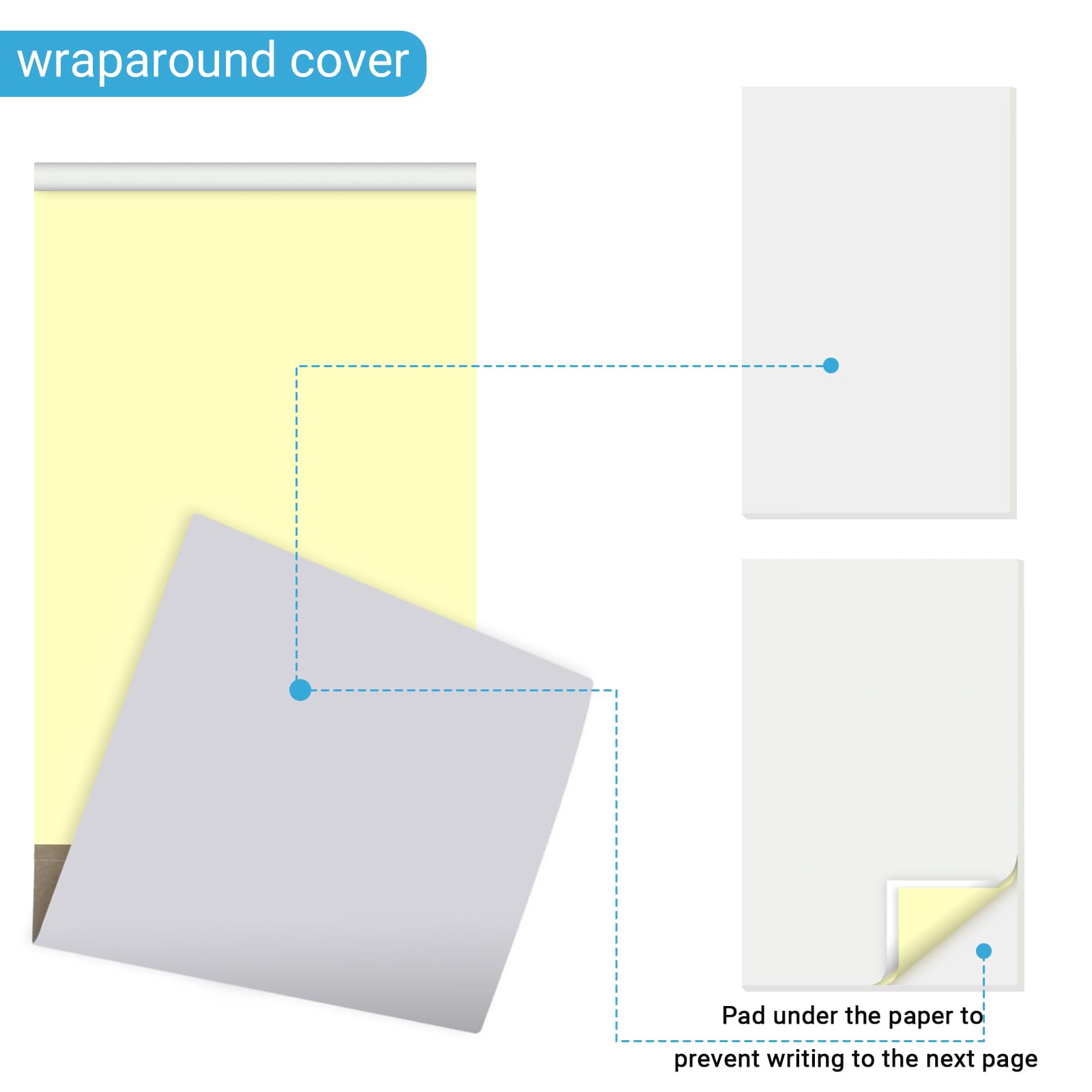Package Include: Blank Carbonless Notepad X 3 50 Sets Each Pad, Total 150 Sets (300 sheets). Product Specification: Material:Blank carbonless lab notebook is made of 80 gsm paper Size: 5.5" W X 8.5" L Feature: Designed with a non-carbon copy paper to provide two copies of the same paper for accurate recording. A wraparound board: The carbonless lab notebook comes with attached cardboard in the book and does not get lost. and the board folds the back cover between sets to keep the paper neat and legible. Also, preventing ink from bleeding Sturdy paper that tears off easily, and flawlessly transfers to the yellow duplicate paper. Wide Application: These carbon duplicate copy papers are suitable for Drafting, Drawing, Sketching, and Meeting Notes, They Can be used for lab notebooks.