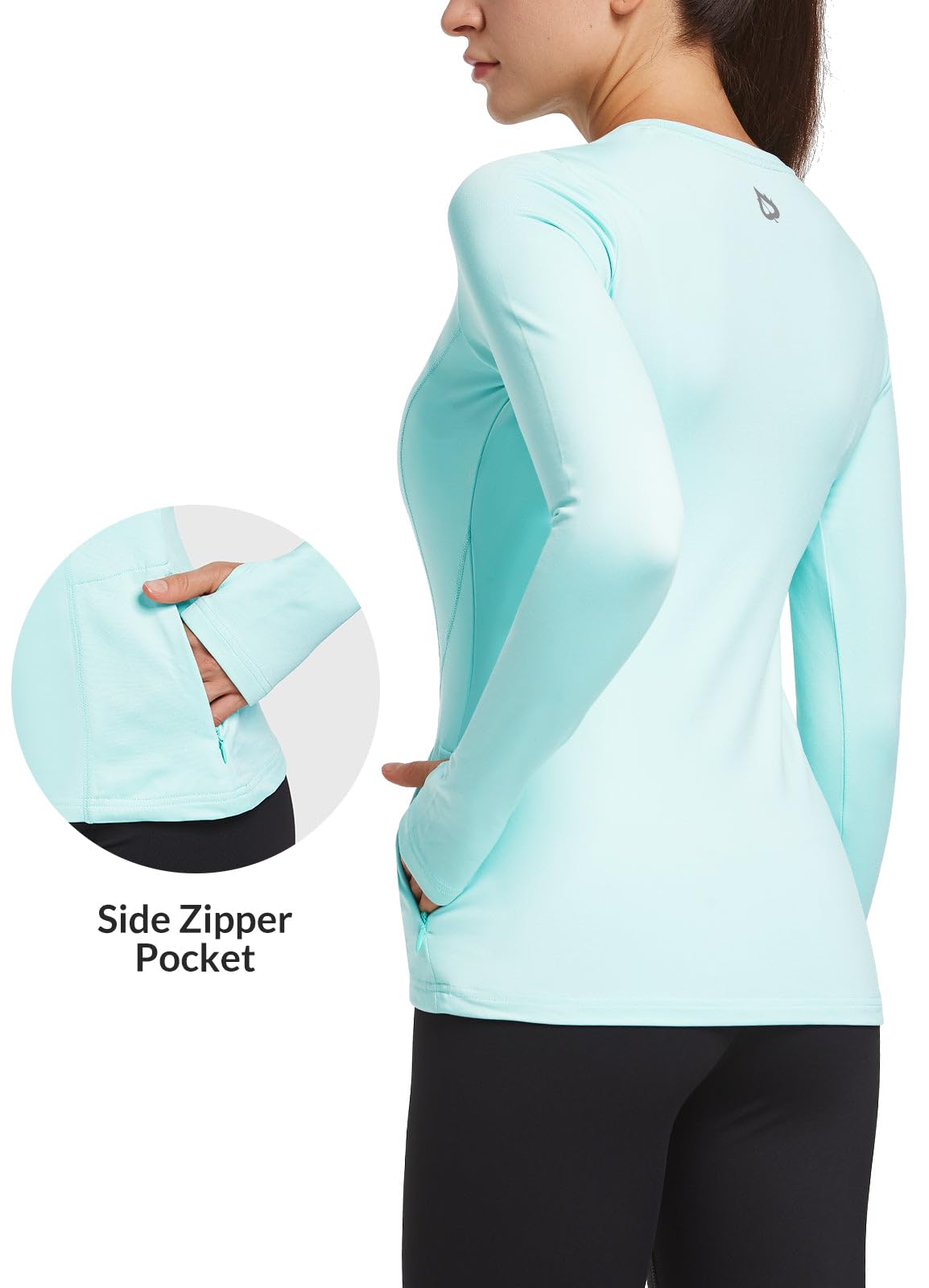 Crew neck and reflective elements are suitable for many cold outdoor activities, such as running, hiking, skiing and travel. Our long sleeve thermal tops will also be your favorate base layer in this winter.